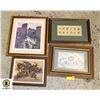 4 WOOD FRAMED PICTURES ONE HAS 1935 CALENDAR ON BACK