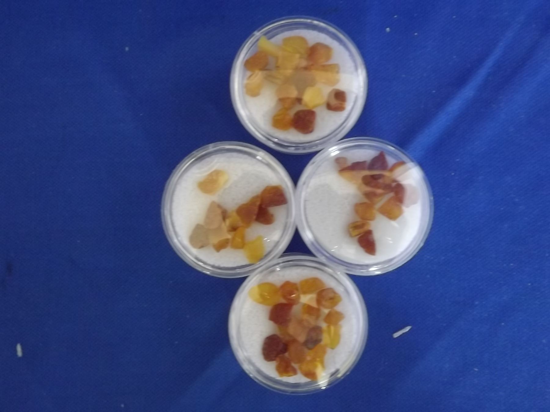 LOT OF 4 GEMSTONE CONTAINERS, BALTIC AMBER STONES