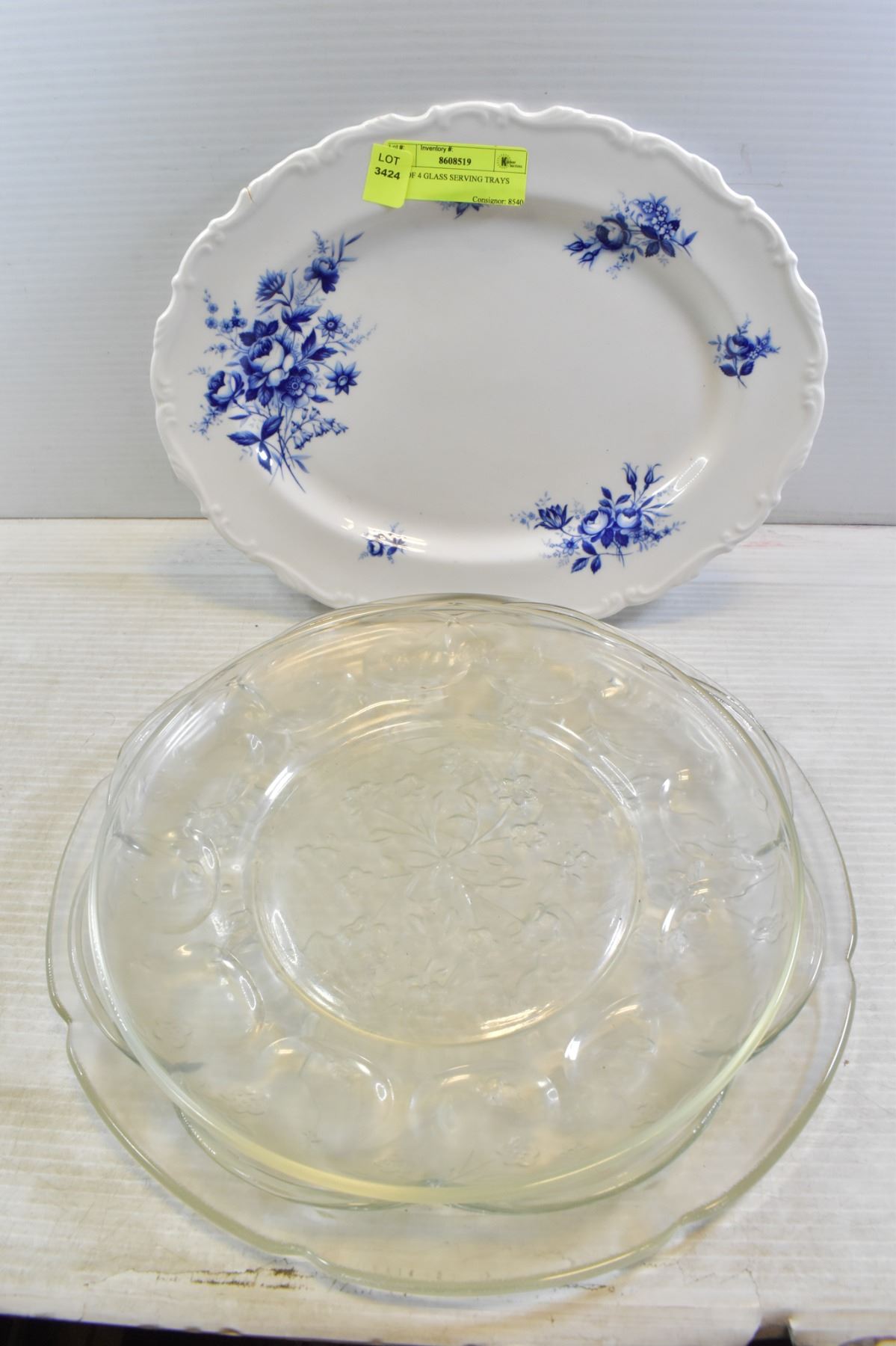 LOT OF 4 GLASS SERVING TRAYS