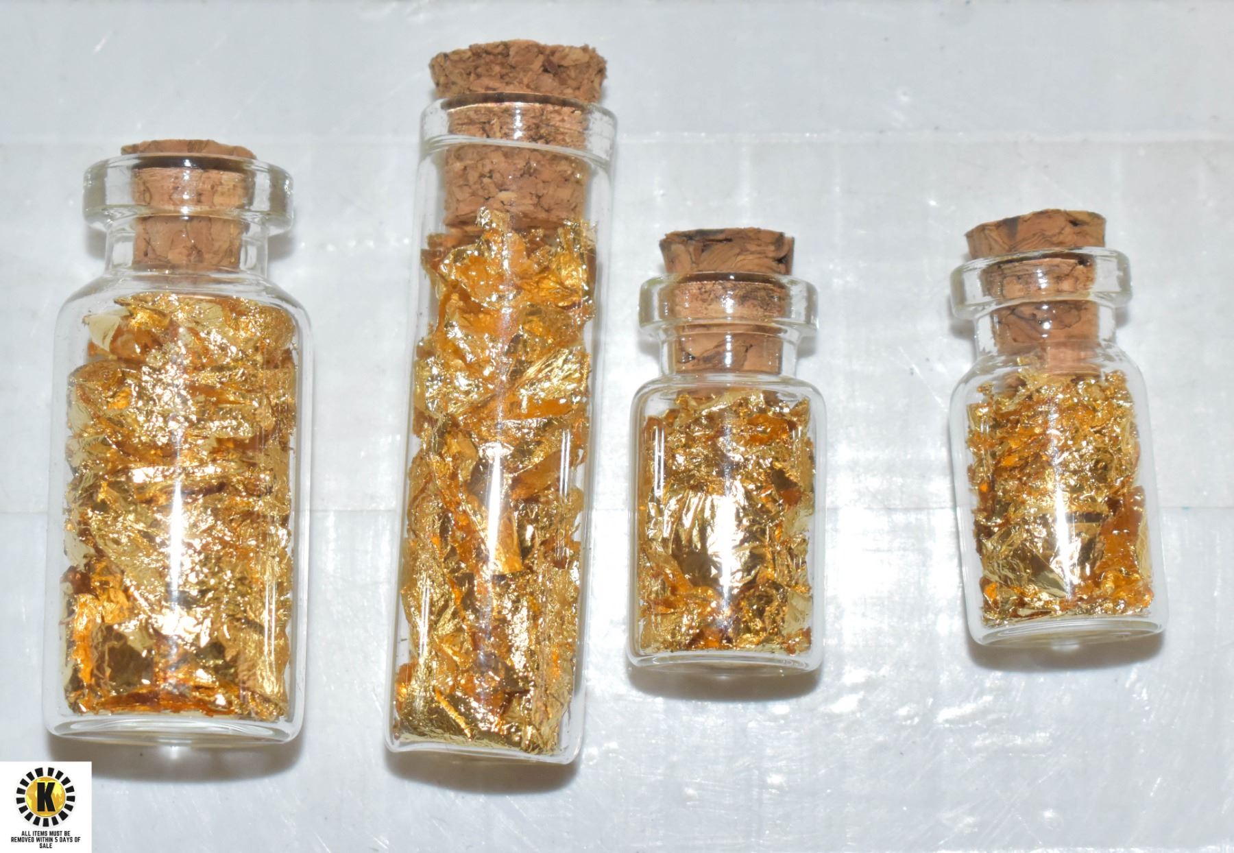 LOT OF 4 GOLD FOIL FLAKES IN GLASS BOTTLES
