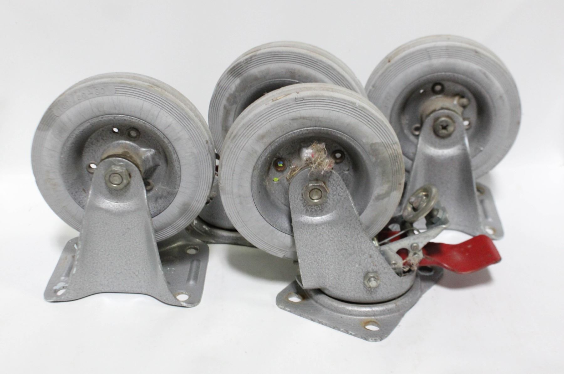 LOT OF 4 HD 7 INCH CASTOR WHEELS (2 RIDGE & 2 BRAKE)
