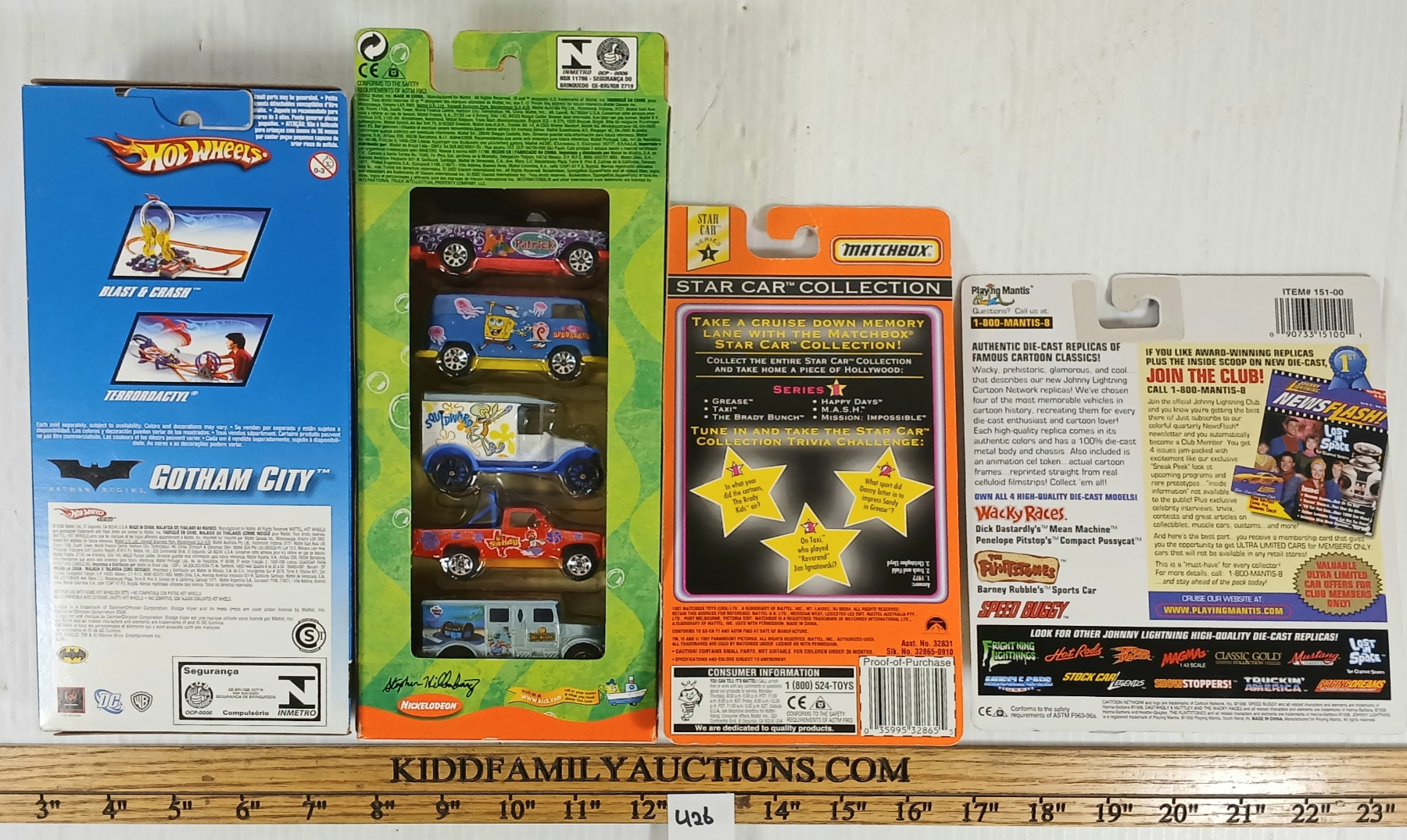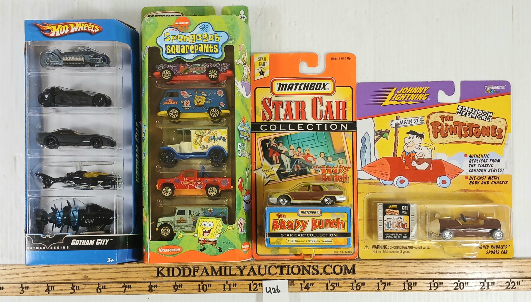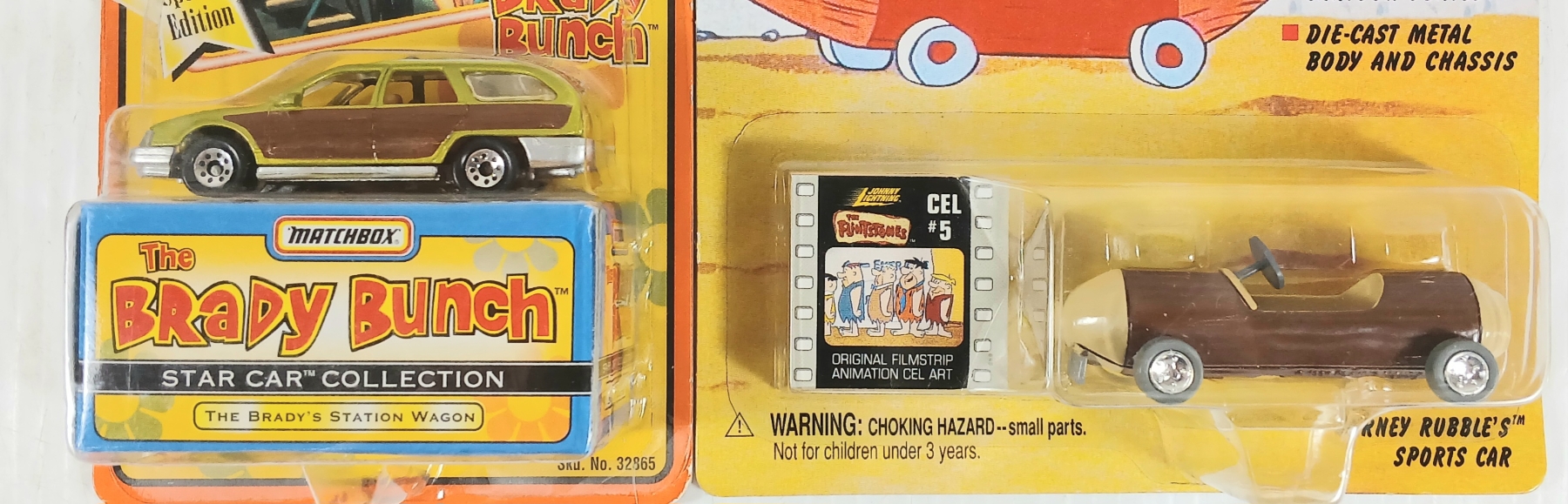 NOTE: INCL 2002 SPONGEBOB SQUAREPANTS - SEALED - 1998 DIECAST BARNEY RUBBLE'S SPORTS CAR W/ ANIMATED CEL TOKEN - 12X PCS