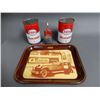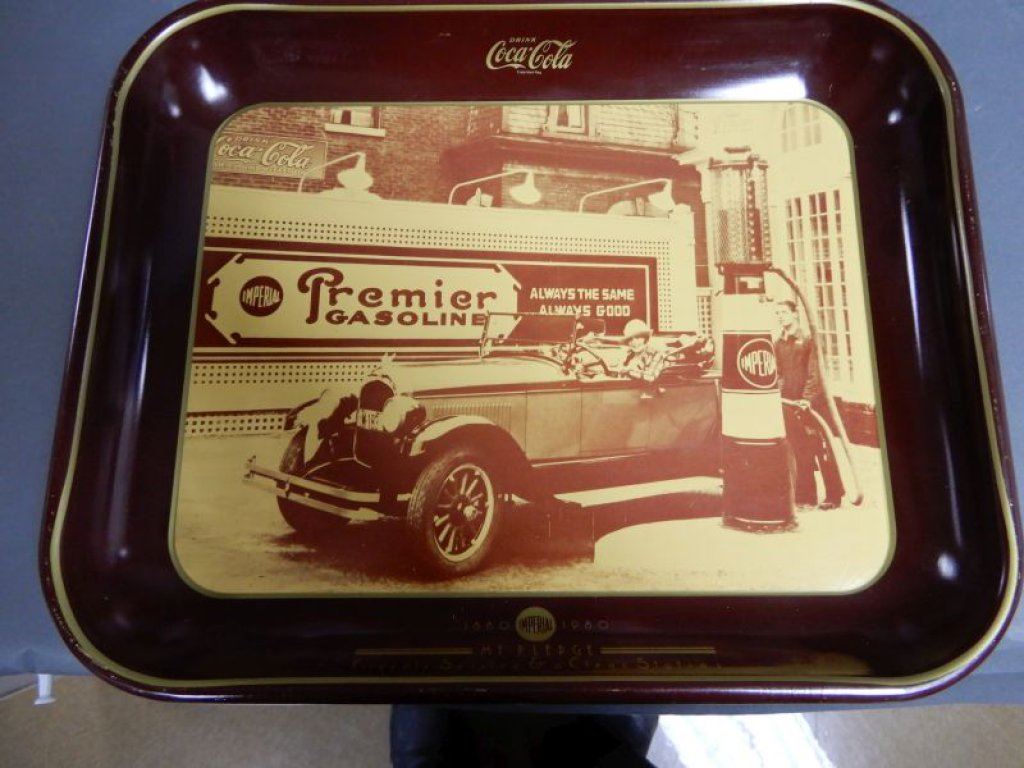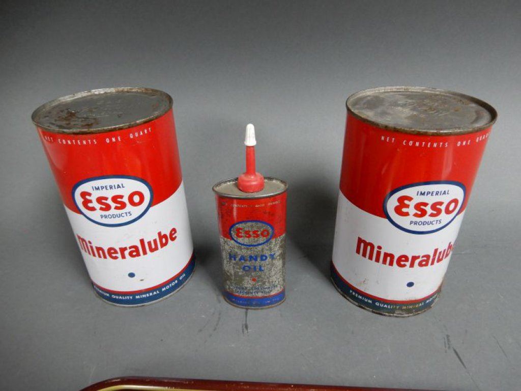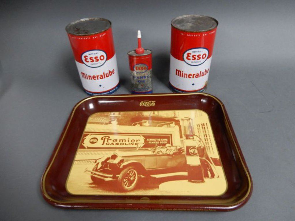 LOT OF 4 IMPERIAL COLLECTIBLES IMPERIAL GASOLINE/COCA-COLA TRAY - 2 ESSO QT CANS WITH EMBOSSED TOPS - ESSO 4 OZ HANDY OILER WITH CAP LOCATION: LOWER LEFT