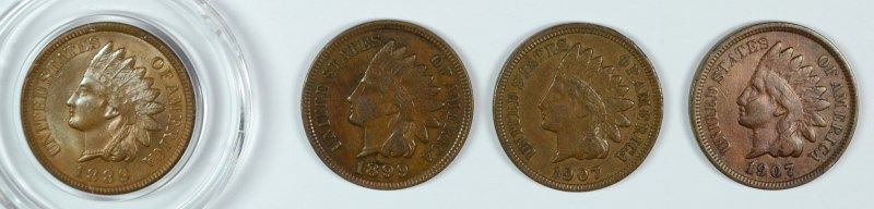 LOT OF (4) INDIAN HEAD CENT XF or BETTER 1899, 1889, 1907, 1907
