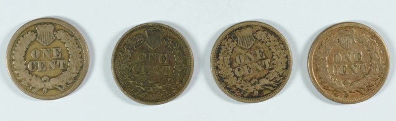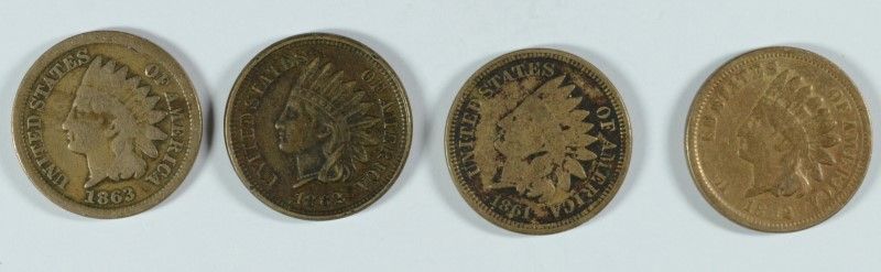 LOT OF ( 4 ) INDIAN HEAD CENTS: 1861 VG, 1862 VF, 1862-F, 1863-VG