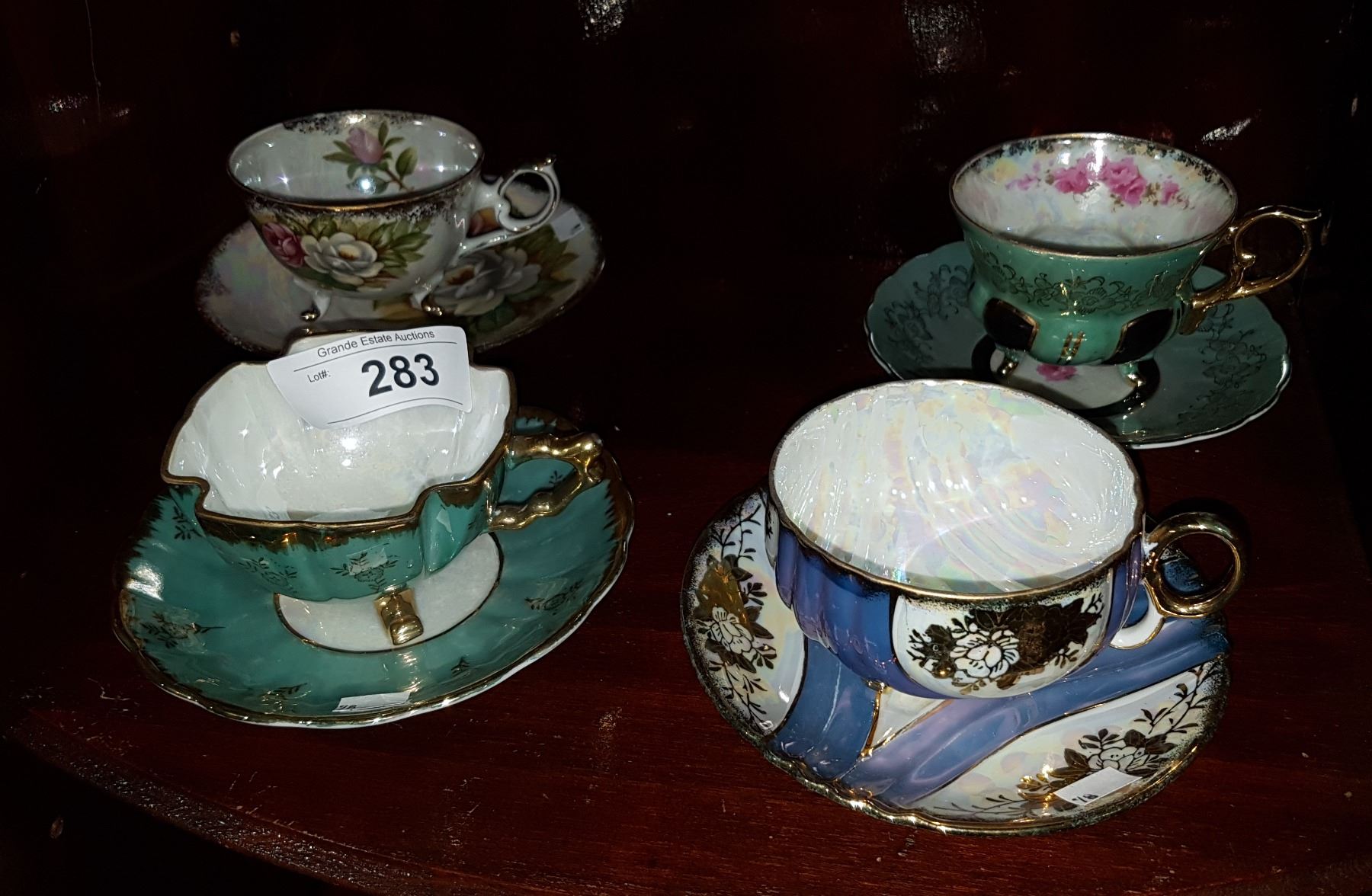 LOT OF 4 JAPANESE FOOTED TEACUPS AND SAUCERS
