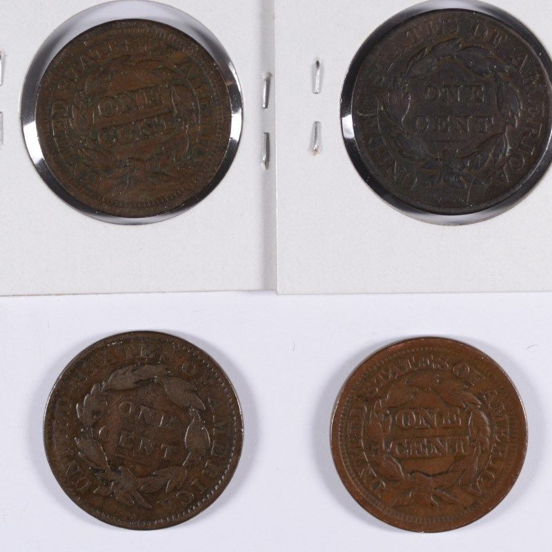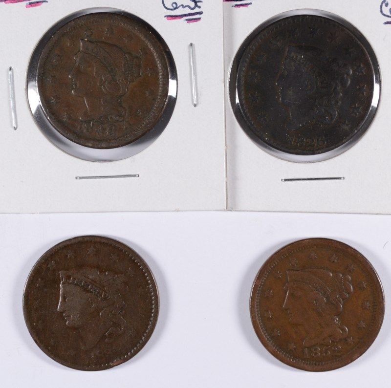 LOT OF (4) LARGE CENTS 1826, 1834, 1848, 1852