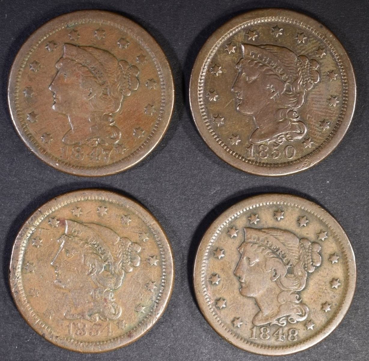 1847 VF, 1848 VF, 1850 XF & 1854 VF ESTIMATE $150 - $170.