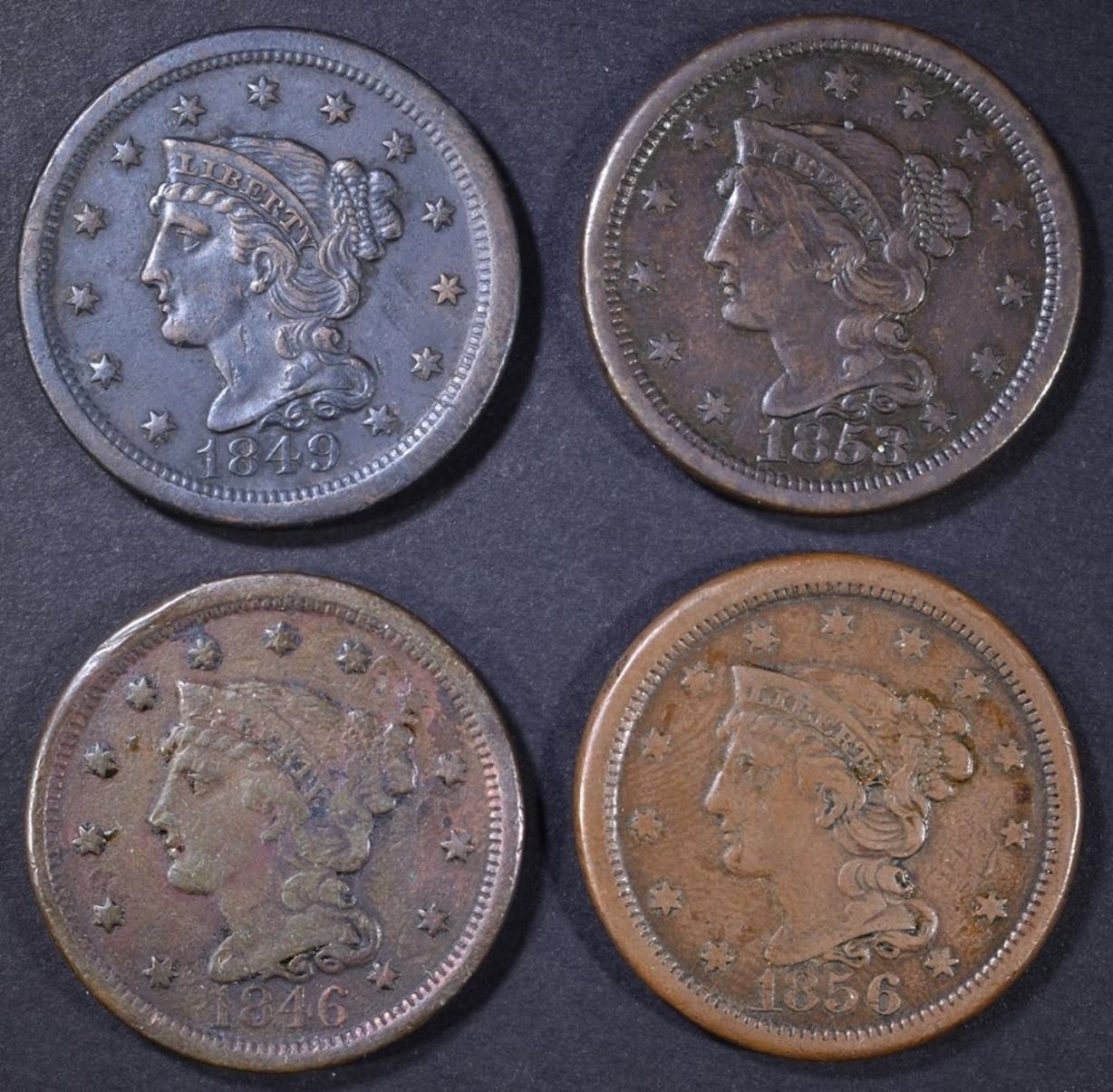 1846 TD FINE, 1849 VF, 1853 XF SCRATCH, 1856 FINE. ESTIMATE $175 - $200.