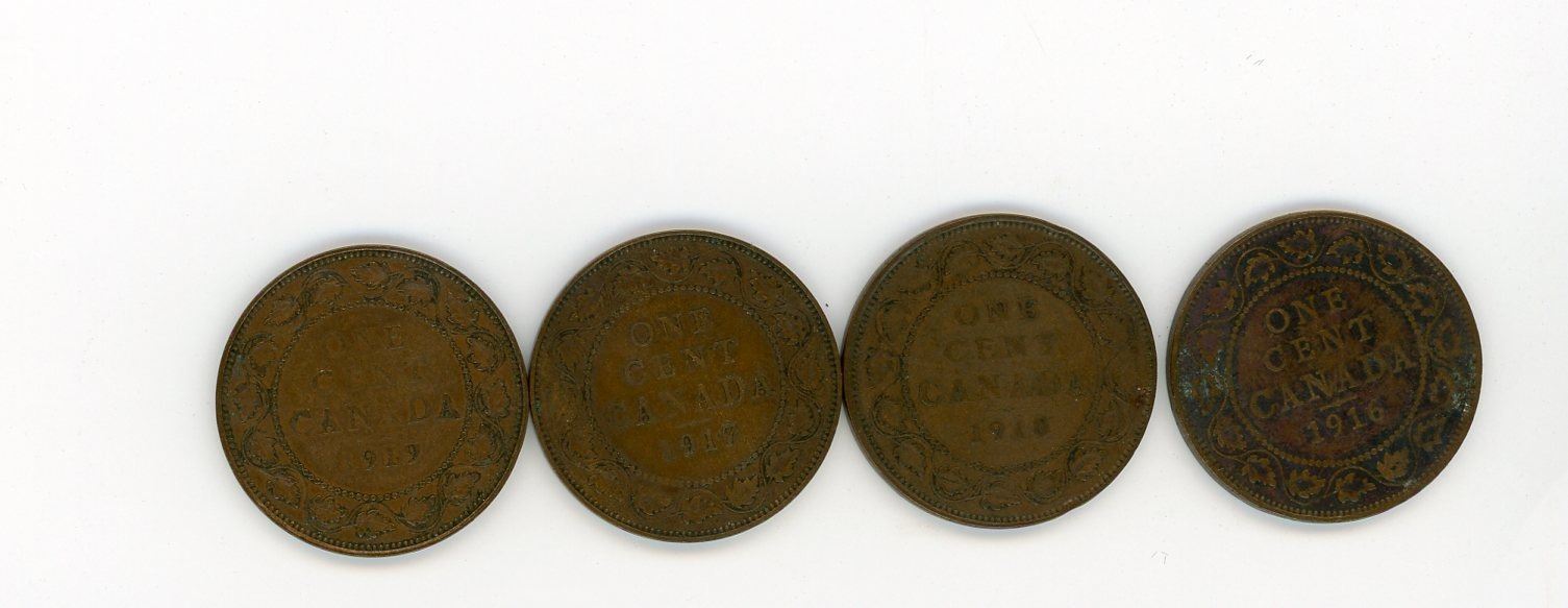 LOT OF 4 LARGE PENNIES (CANADA) *1916, 17, 18, 19*