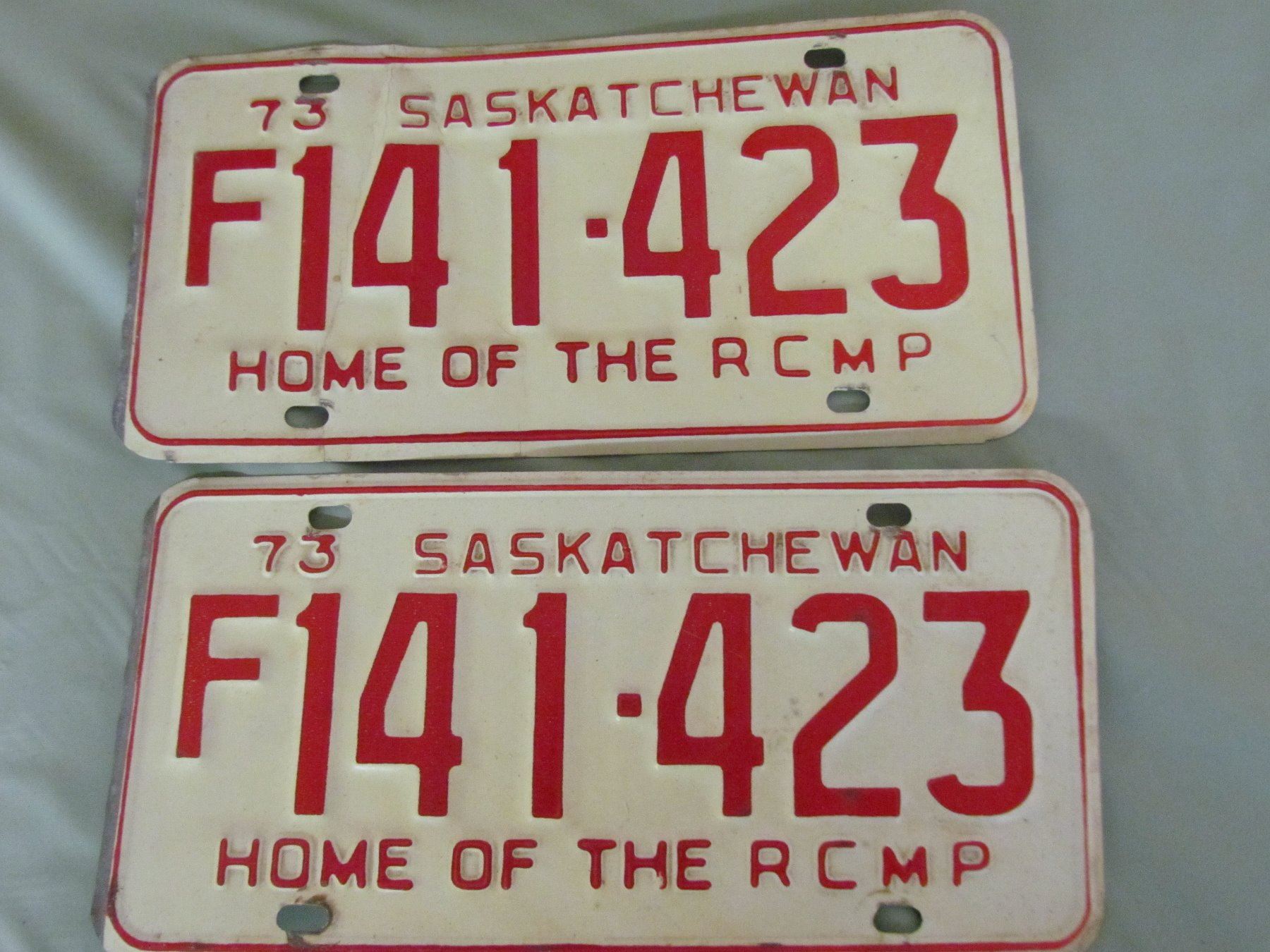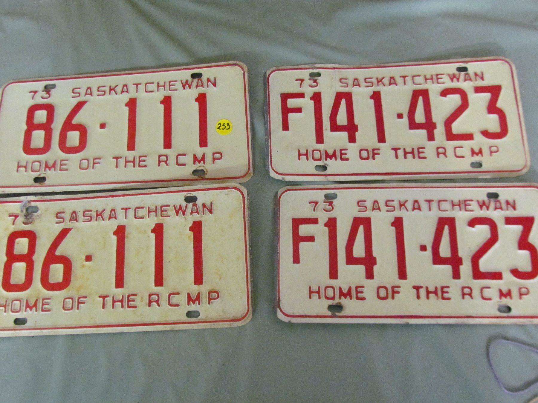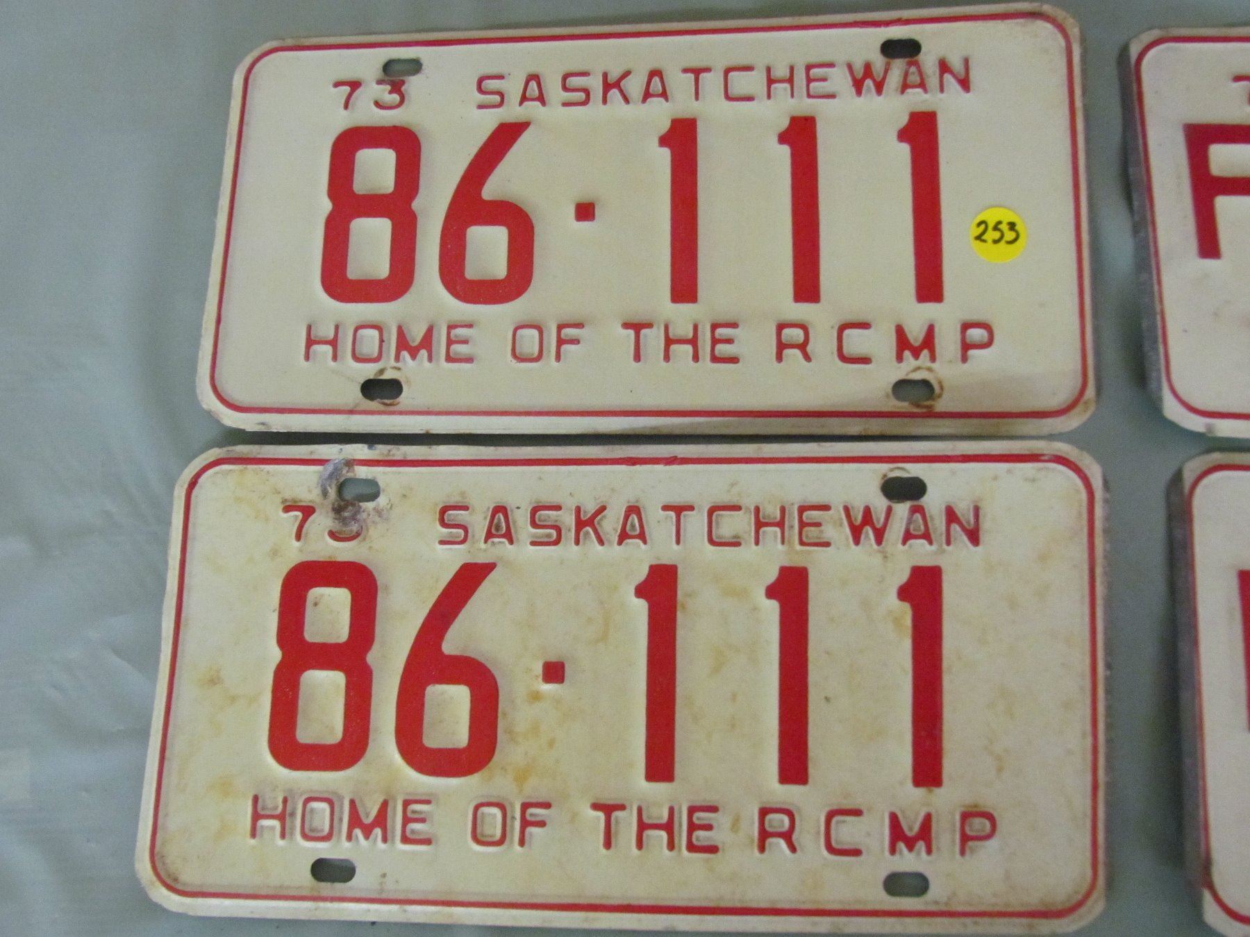 LOT OF 4 LICENSE PLATES (SASKATCHEWAN) *RCMP-1973, 2 MATCHING SETS*