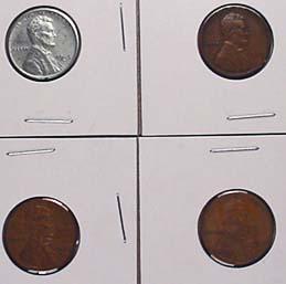 LOT OF 4 LINCOLN CENTS - 1909-P, 1959-D, 1943-S, 1