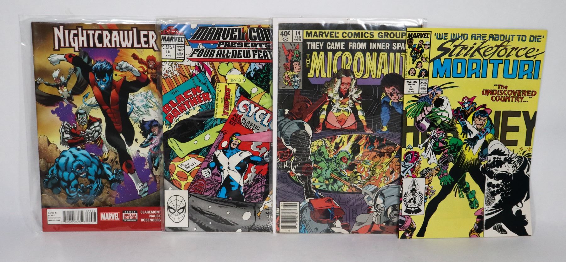 NIGHTCRAWLER #009 MARVEL COMICS PRESENTS FOUR ALL NEW FEATURES #18 THE MICRONAUTS #14 STRIKEFORCE MORITURI #9***ITEM(S) LOCATED IN LETHBRIDGE ALBERTA. SMALL ITEMS ONLY ARE AVAILABLE FOR FREE TRANSPORT TO EDMONTON OFFICE (READ AUCTION DETAILS FOR MORE INFORMATION)