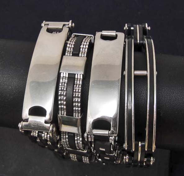 LOT OF 4 MENS STAINLESS STEEL BRACELETS