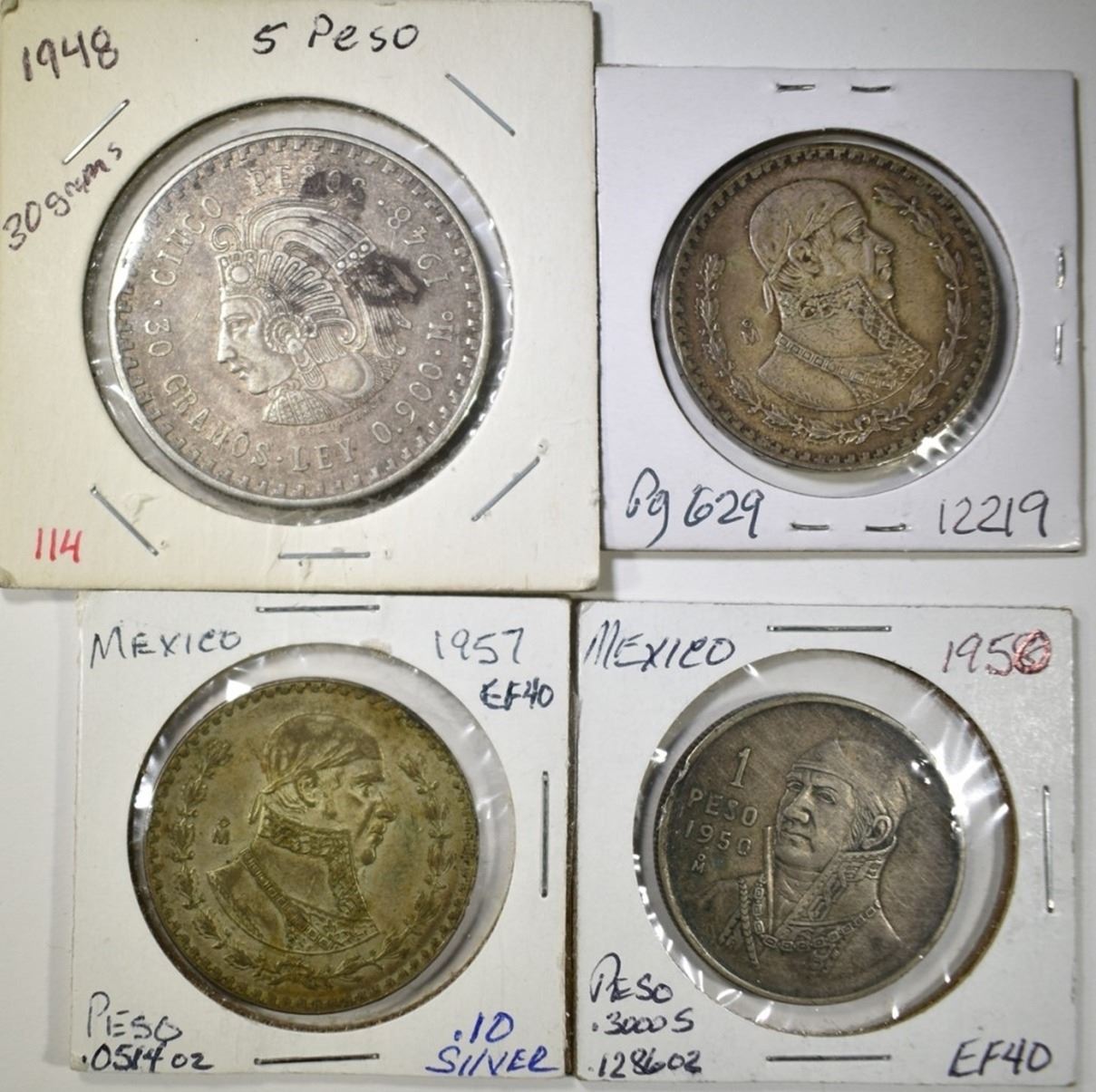 1948 5 PESO, 1950, 1957 & 1964 1 PESO XF. ESTIMATE $100 - $125.