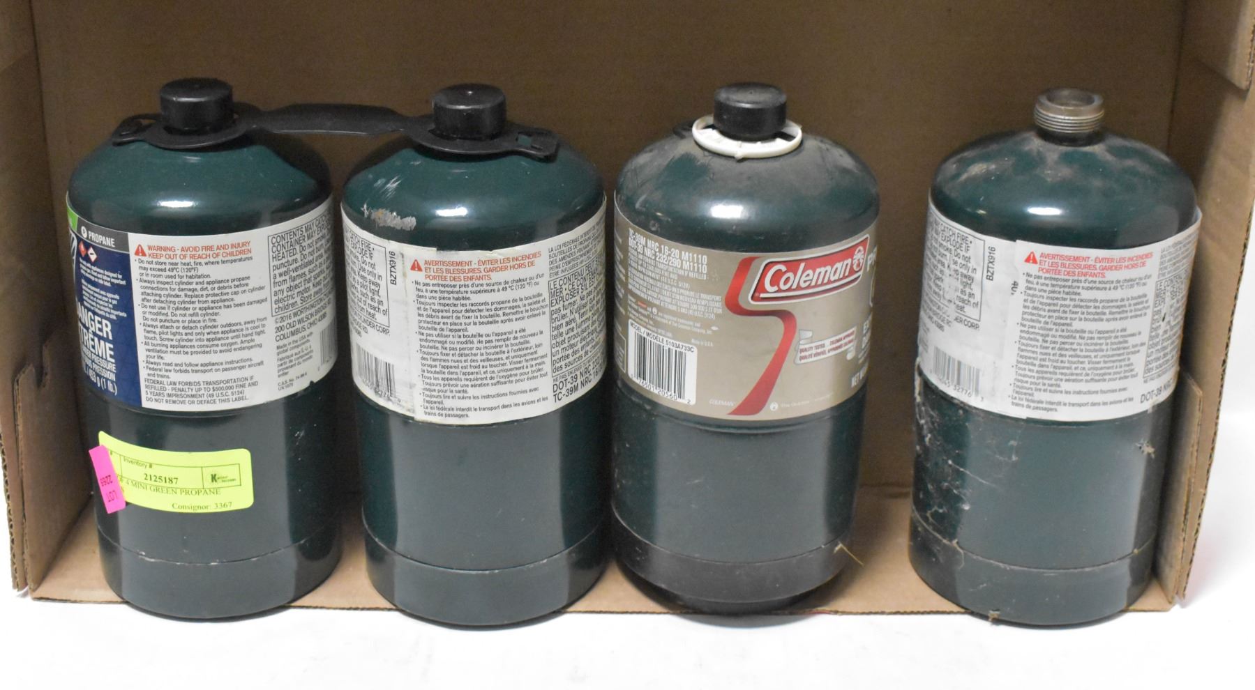 LOT OF 4 MINI GREEN PROPANE TANKS