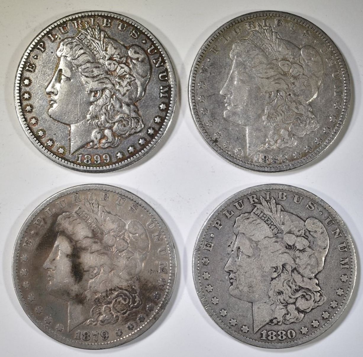 1879 VG, 1880-O FINE, 1883 VF & 1899-O AU CLEANED. ESTIMATE $125 - $150.