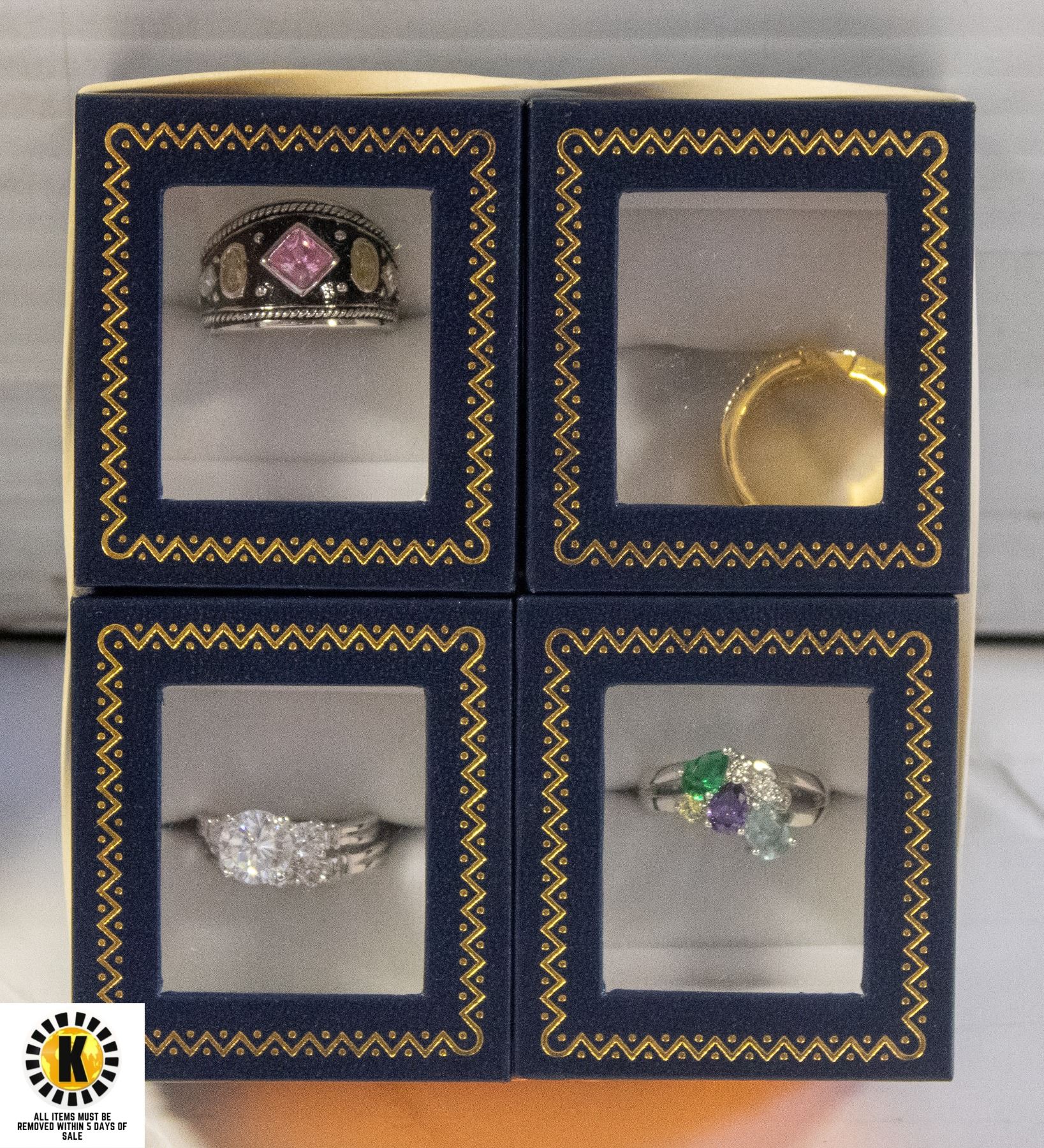 LOT OF 4 NEW FASHION RINGS WITH BOXES