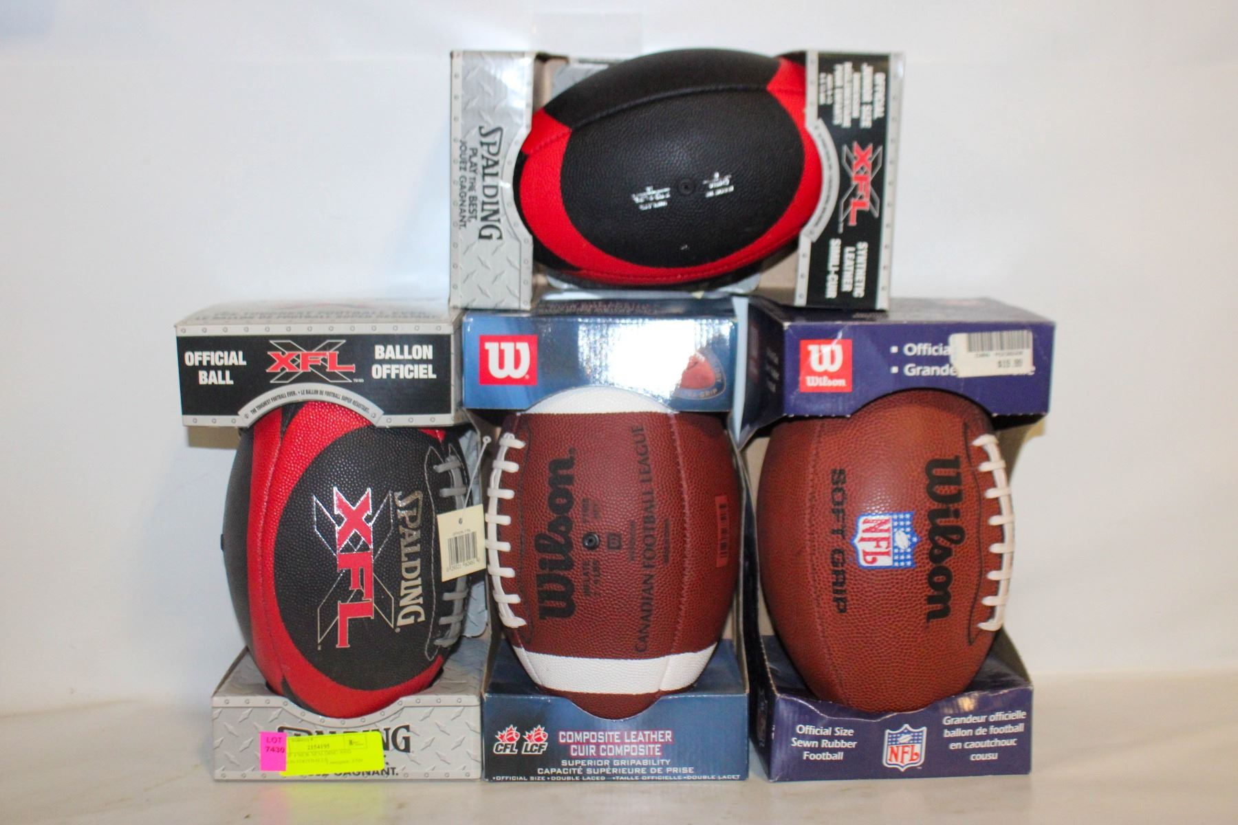 LOT OF 4 NEW SPALDING AND WILSON FOOTBALLS