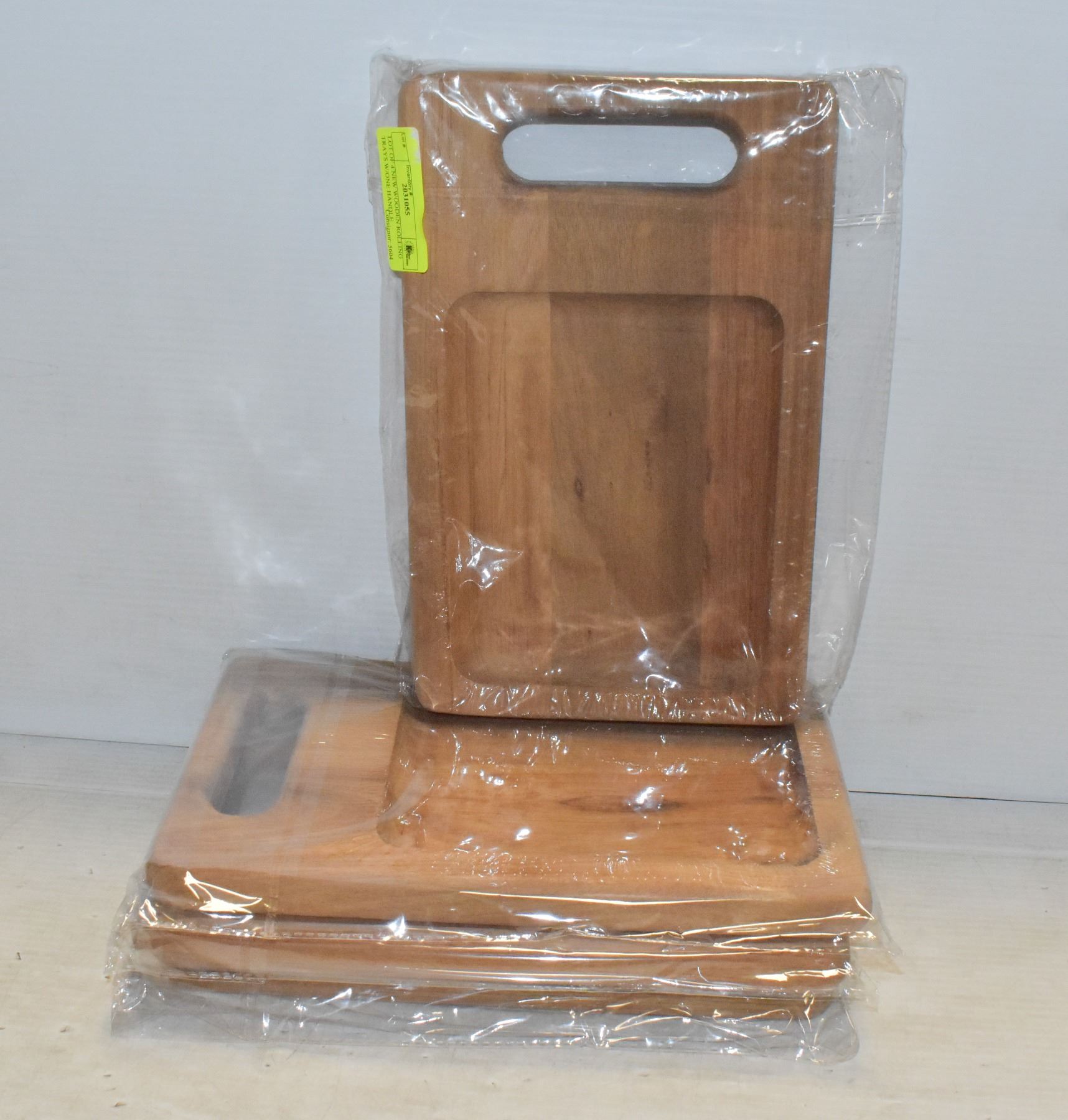 LOT OF 4 NEW WOODEN ROLLING TRAYS
