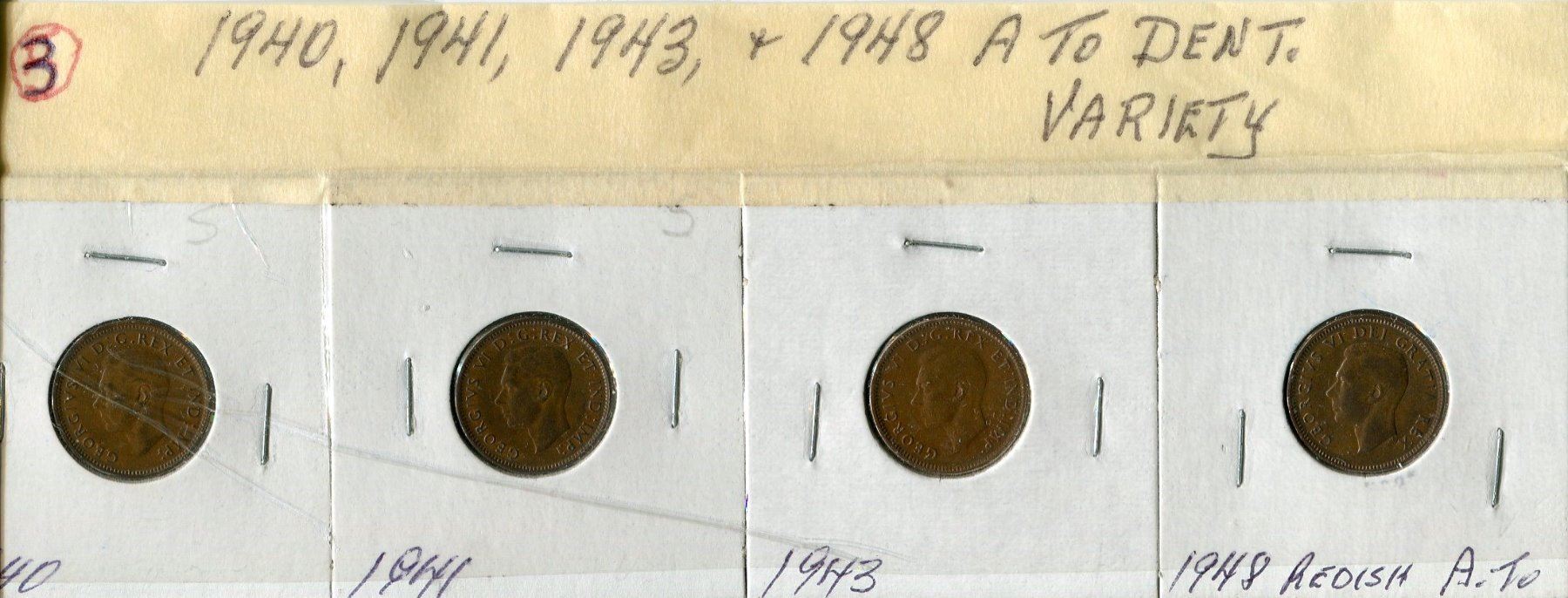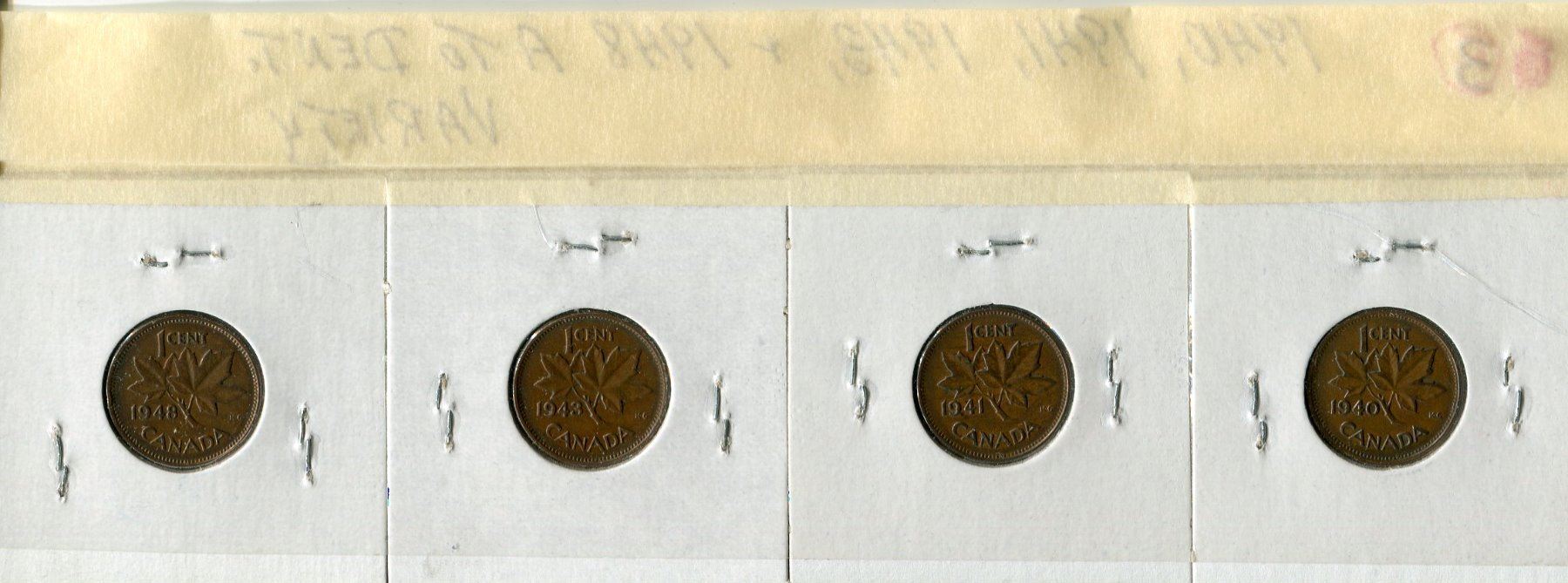 LOT OF 4 ONE CENT COINS (CANADA) *1940, 1941, 1943, 1948*