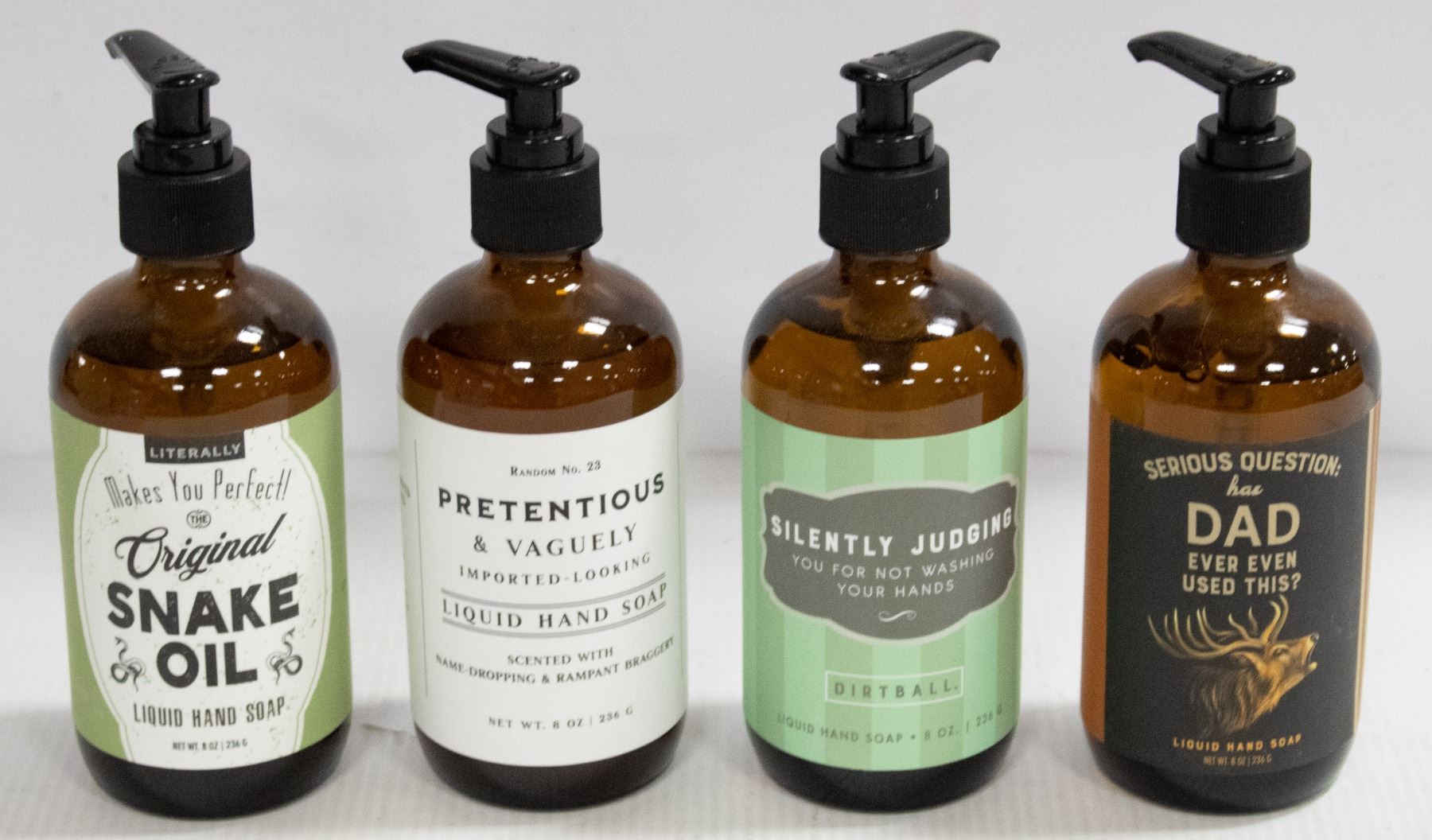 LOT OF 4 ORGANIC FUNNY SOAP BOTTLES FULL NEW