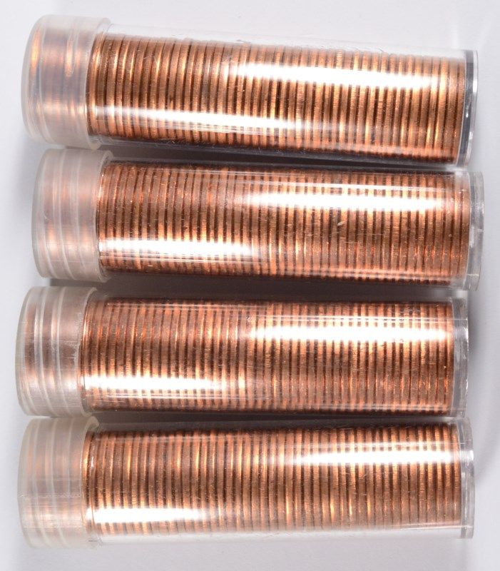 LOT OF ( 4 ) ORIGINAL GEM ROLLS OF 1954 LINCOLN CENTS, ( 200 ) COINS