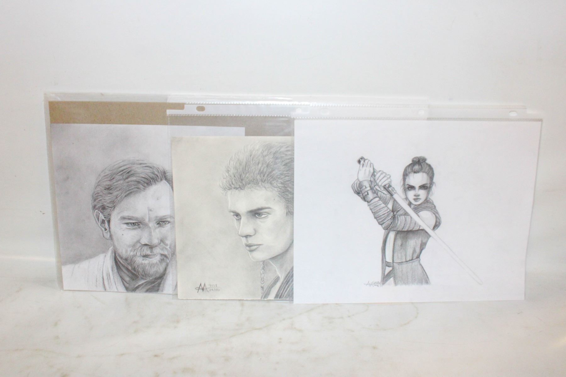 LOT OF 4 ORIGINAL STAR WARS PENCIL ART, ARTIST SIG