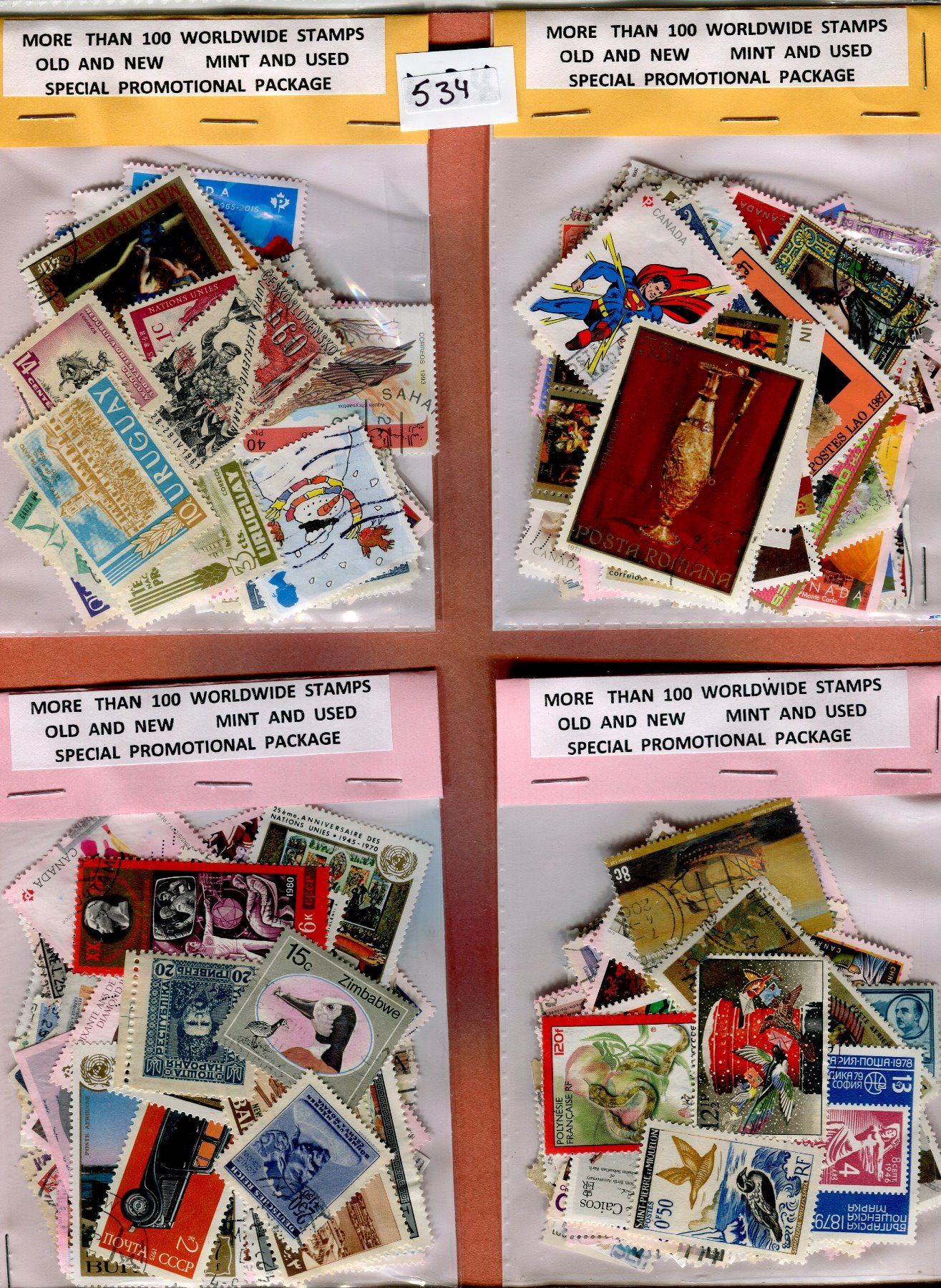 LOT OF 4 PACKAGES OF 100 STAMPS (NICE ASSORTMENT)