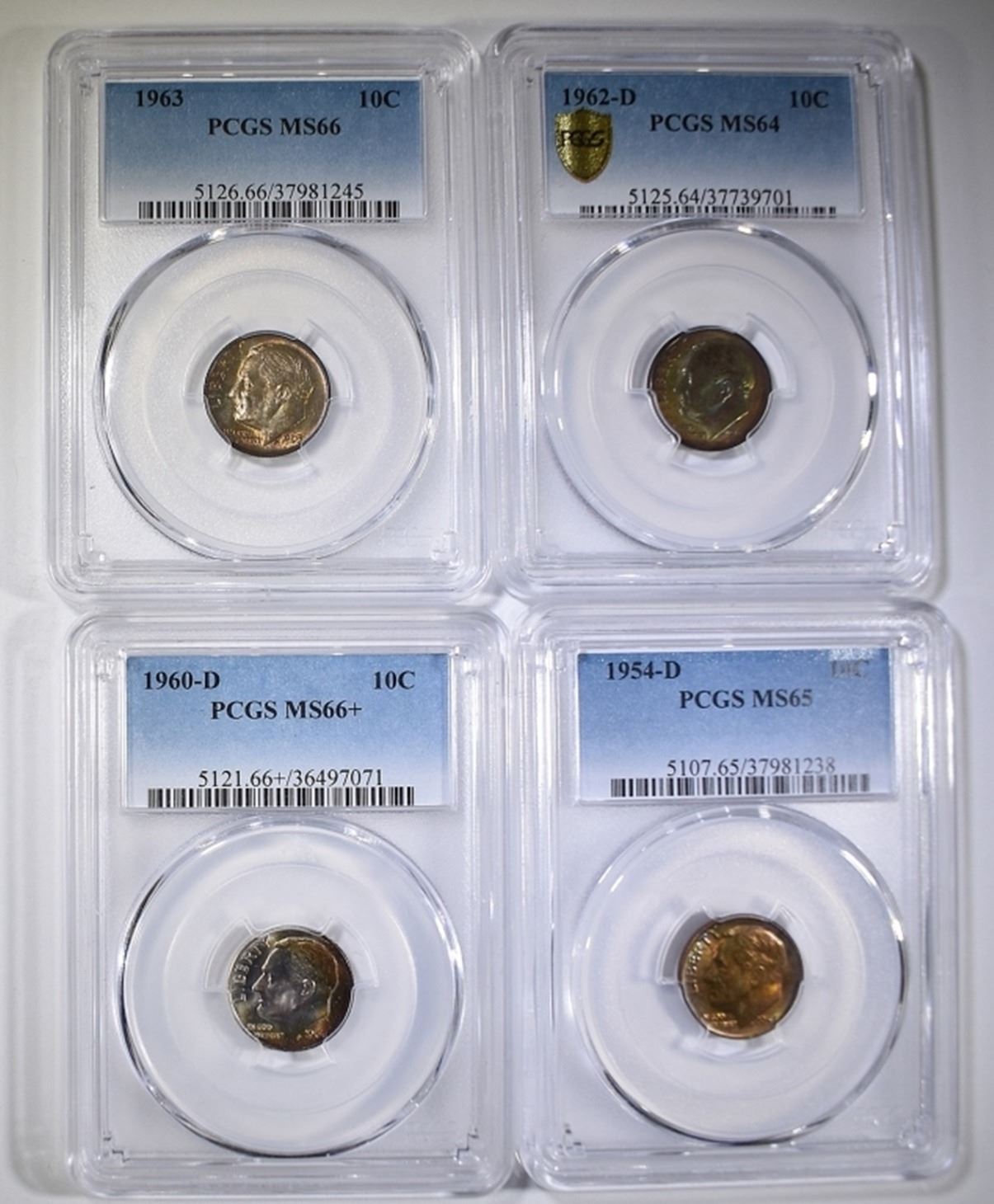 1954-D MS-65, 1960-D MS-66+, 1962-D MS-64, & 1963 MS-66. ESTIMATE $160 - $180.