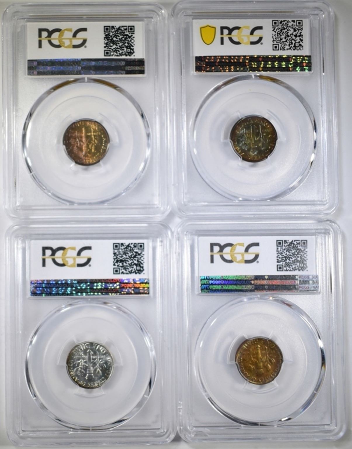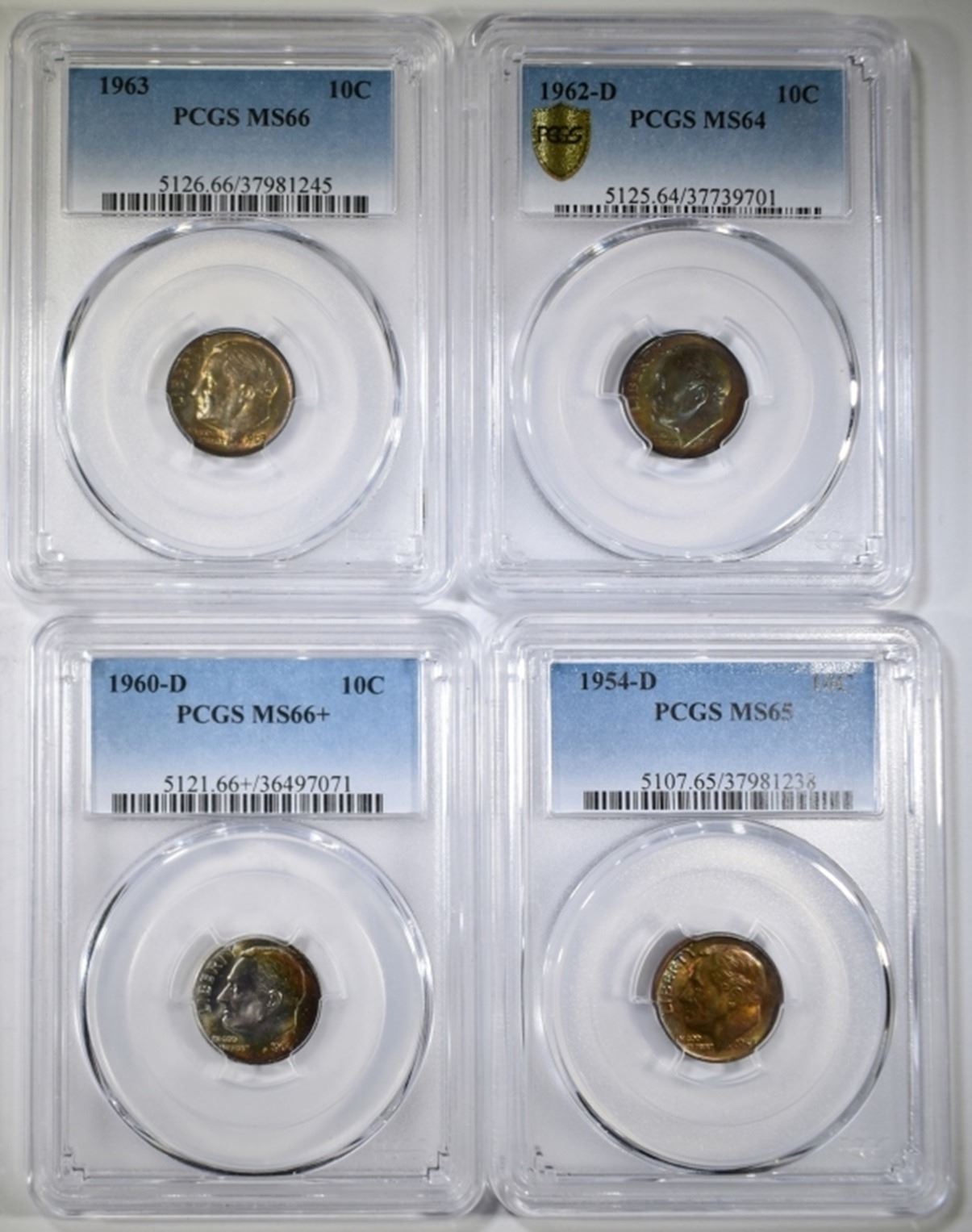 1954-D MS-65, 1960-D MS-66+, 1962-D MS-64 GOLD SHIELD AND 1963 MS-66. ESTIMATE $125 - $150.