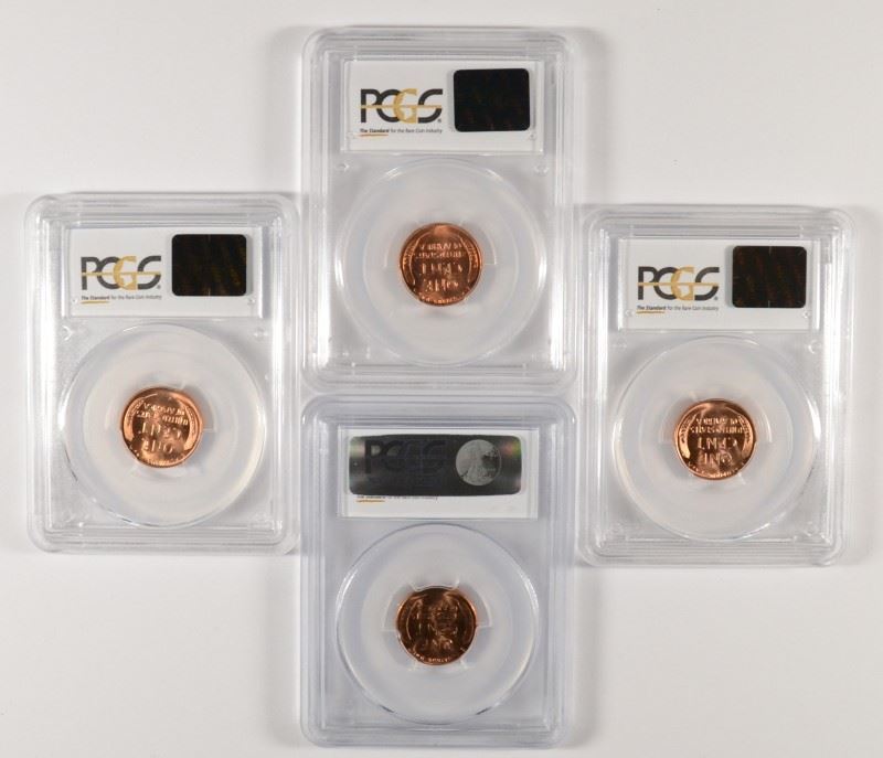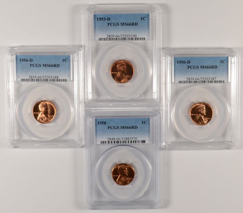 LOT OF ( 4 ) PCGS MS-66 RED LINCOLN CENTS: 1953-D, ( 2 ) 1956-D & ( 1 ) 1958