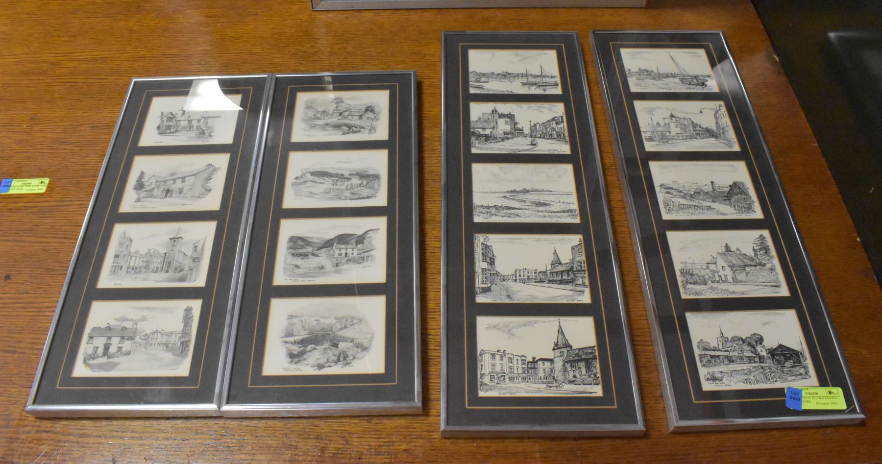 LOT OF 4 PENCIL ETCHED FRAMED MINI ARTWORK