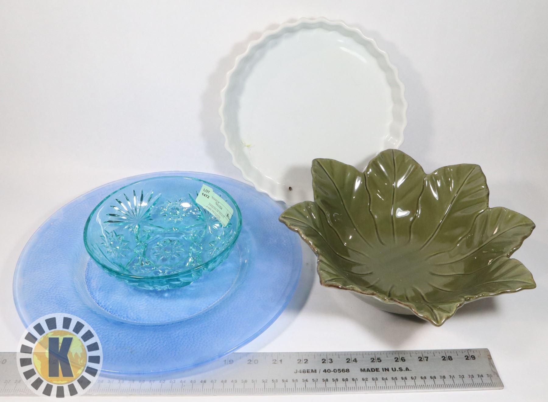 GREEN LEAF BOWL, BLUE GLASS BOWL, AND MORE**MAJOR PROCEEDS FOR SALE OF THIS LOT ARE FOR SOUTHERN ALBERTA CHARITY*****ITEM(S) LOCATED IN LETHBRIDGE ALBERTA. TRANSPORT TO EDMONTON SERVICE WILL BE REDUCED (EXPECT LONGER WAIT TIMES). WE CAN ONLY TRANSPORT SMALL ITEMS (SHOEBOX SIZE OR SMALLER) CANADA POST SHIPPING IS AVAILABLE.