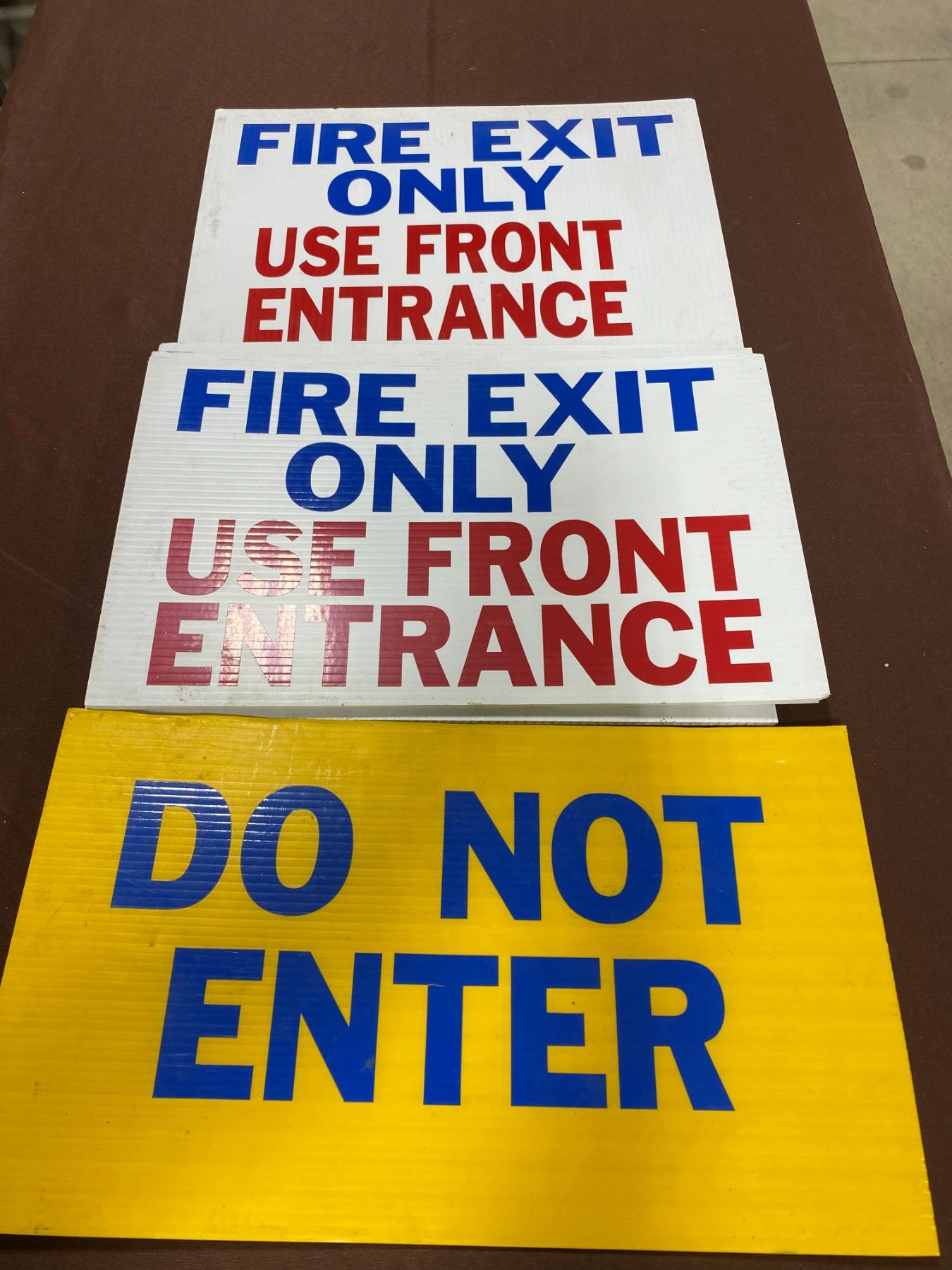 LOT OF 4 PLASTIC 'FIRE' SIGNS