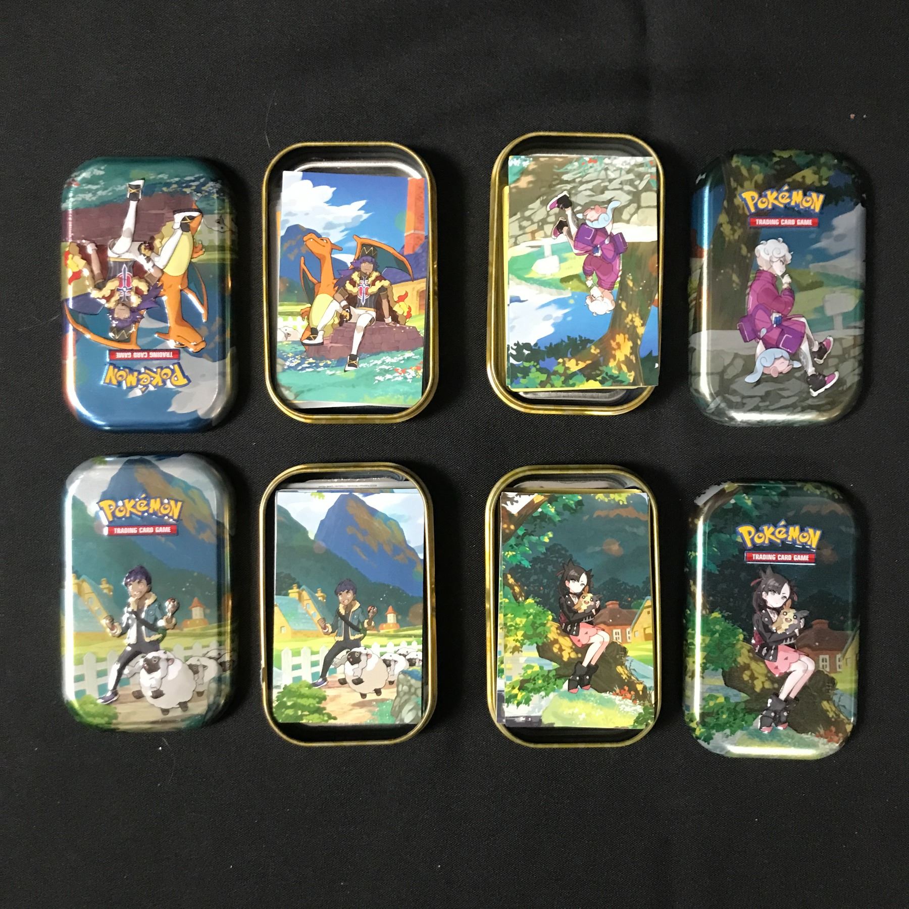 LOT OF 4 POKEMON TCG TIN BOXES INCLUDING CARDS