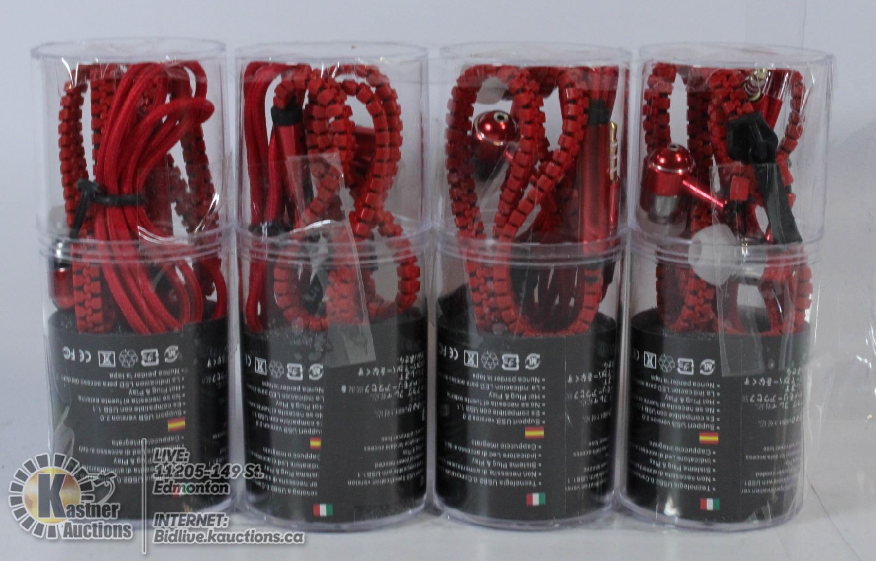 LOT OF 4 RED ZIPPERED HEADPHONES AND MIC 3.5mm