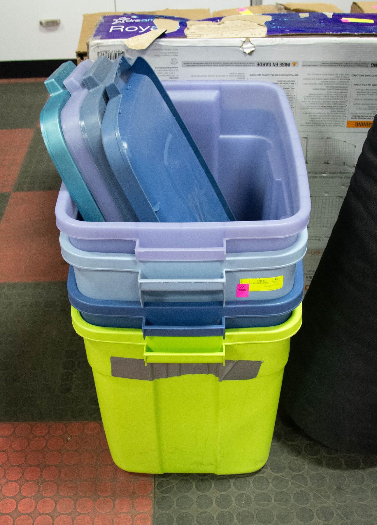 LOT OF 4 RUBBERMAID TOTES & LIDS