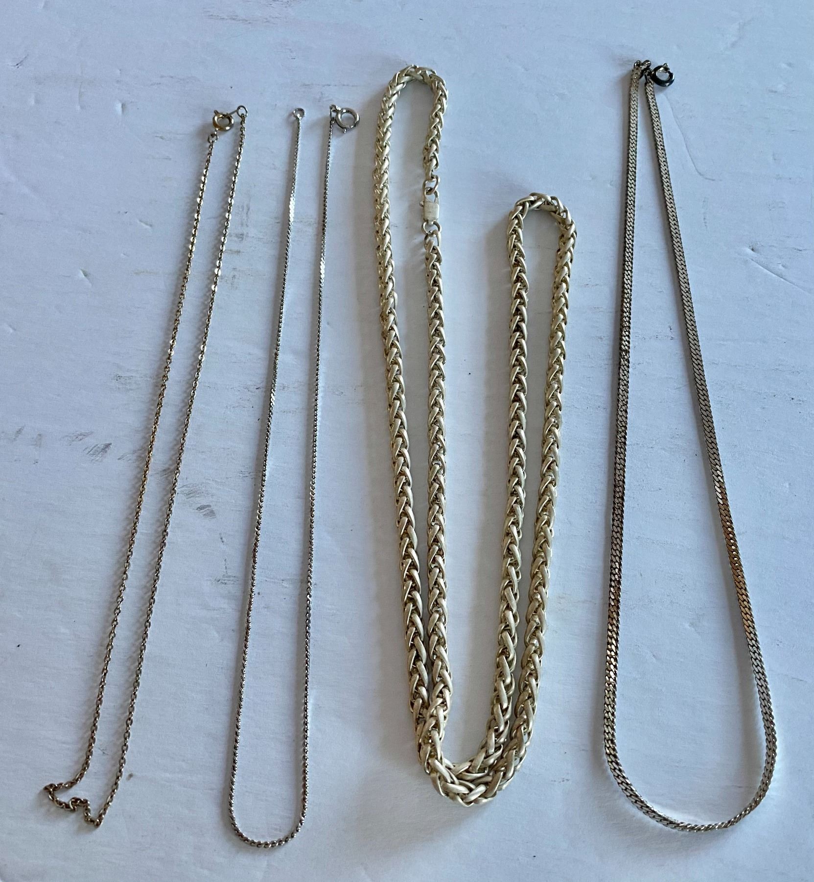 LOT OF 4 SILVER CHAINS - NO MARKINGS FOUND