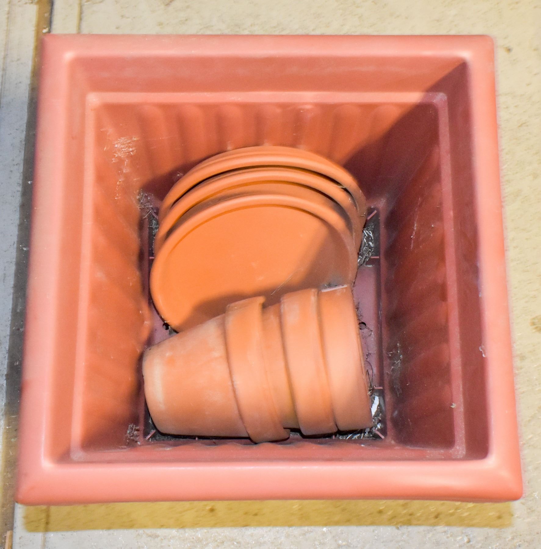 LOT OF 4 SQUARE PLANTERS & CLAY POT