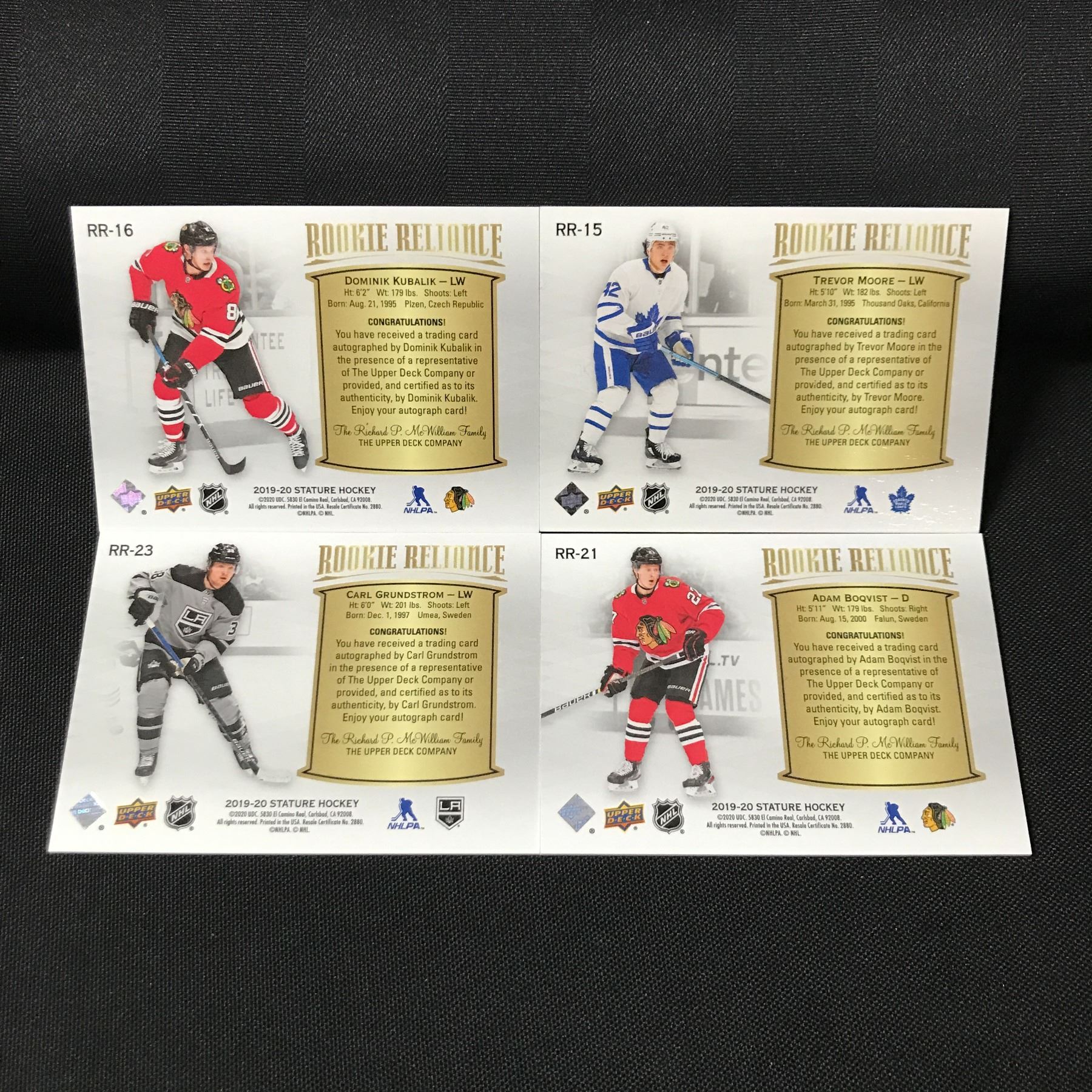 LOT OF 4 STATURE ROOKIE SIGNED HOCKEY TRADING CARDS