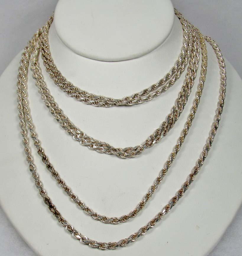 LOT OF 4 STERLING SILVER CHAIN NECKLACES - 3.45 OZ. TW.