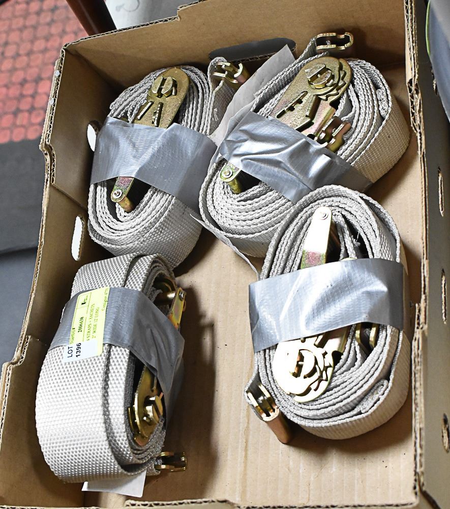 LOT OF 4 STRAPS + RACHETS 1000LBS 2" WIDE 12' LONG