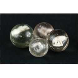 LOT OF 4 SULPHIDE MARBLES. Lot includes a 1 3/4” begging bear; a 1 5/8” polar bear; a 1 1/2” standing lion; and a 1 5/16” elephant. CONDITION: All are in poor condition w/shallow chips all over and need to be polished; begging bear figure is off-center. WB 1-4651-15 (200-300)
