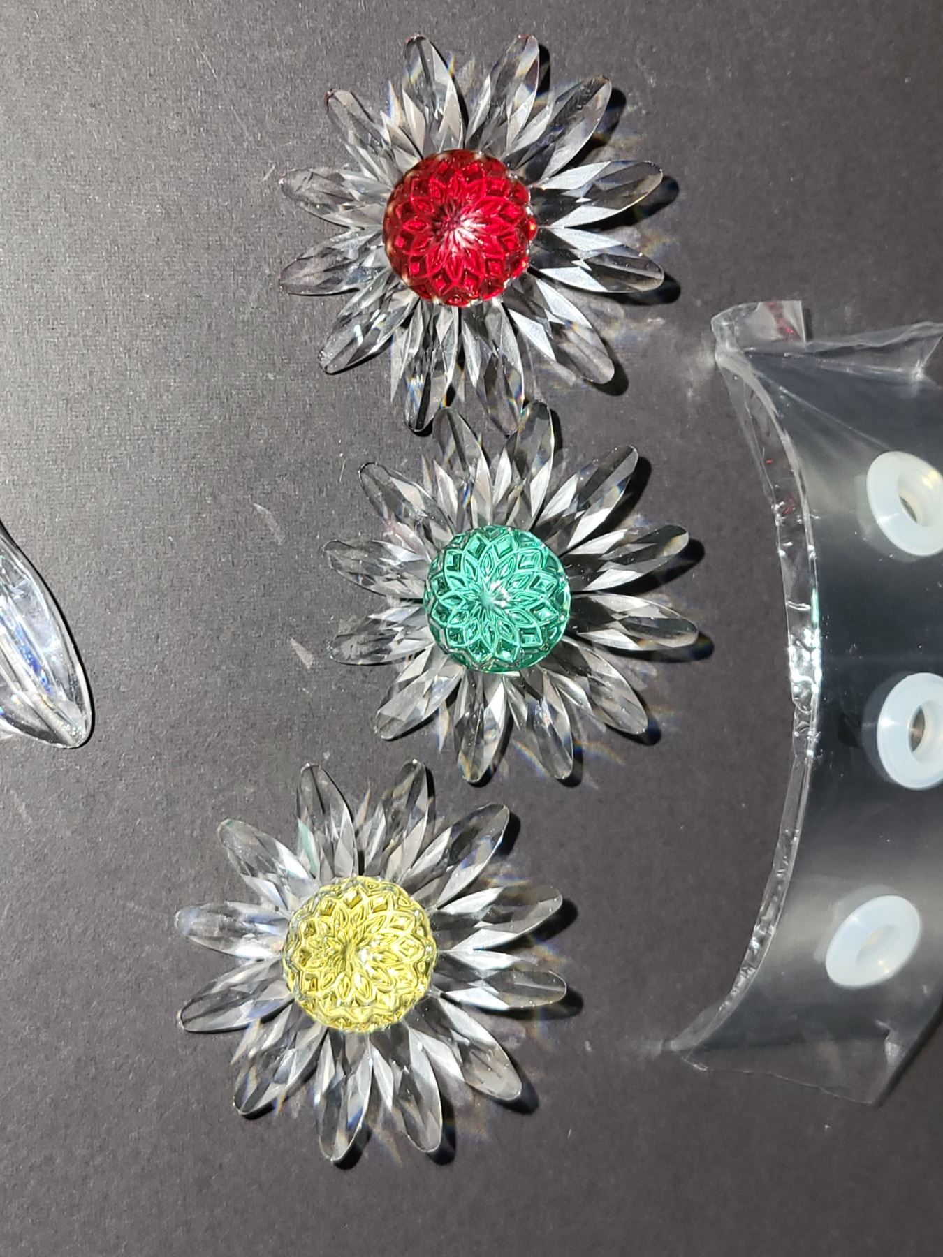 LOT OF 4 SWAROVSKI STEMMED FLOWERS AND DISPLAY UNIT. 3 MEASURE 1.75" AND 1 MEASURES 3.5". COMES WITH 2 BOXES.
