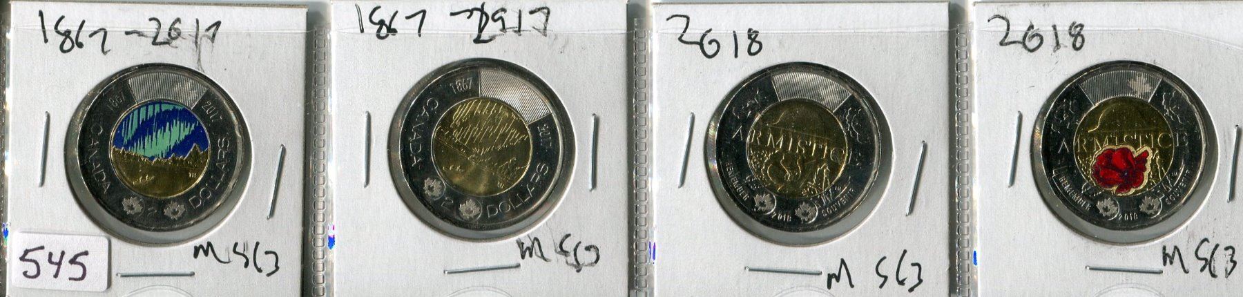 LOT OF 4 TWO DOLLAR COINS (CANADA) *2017-2018*