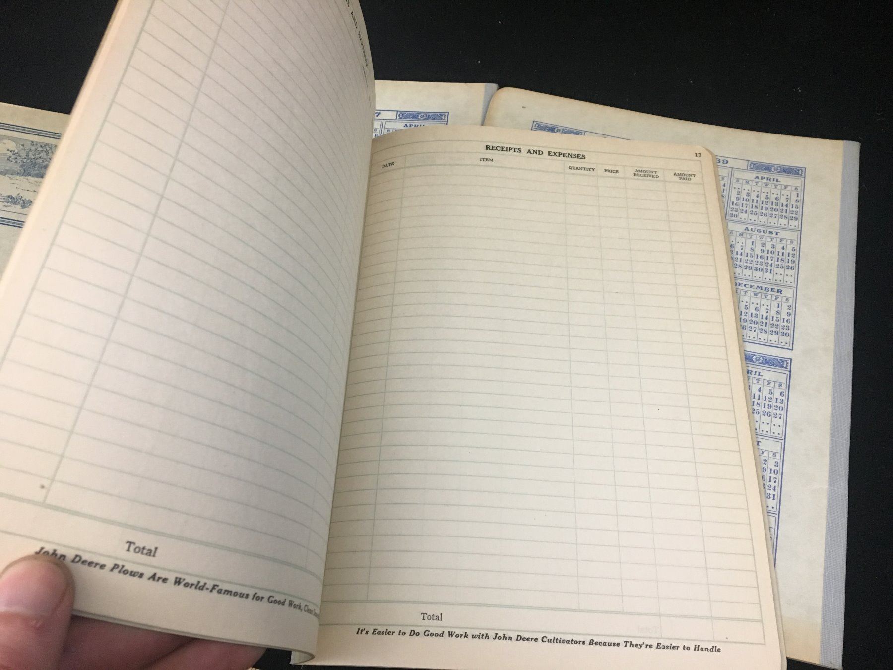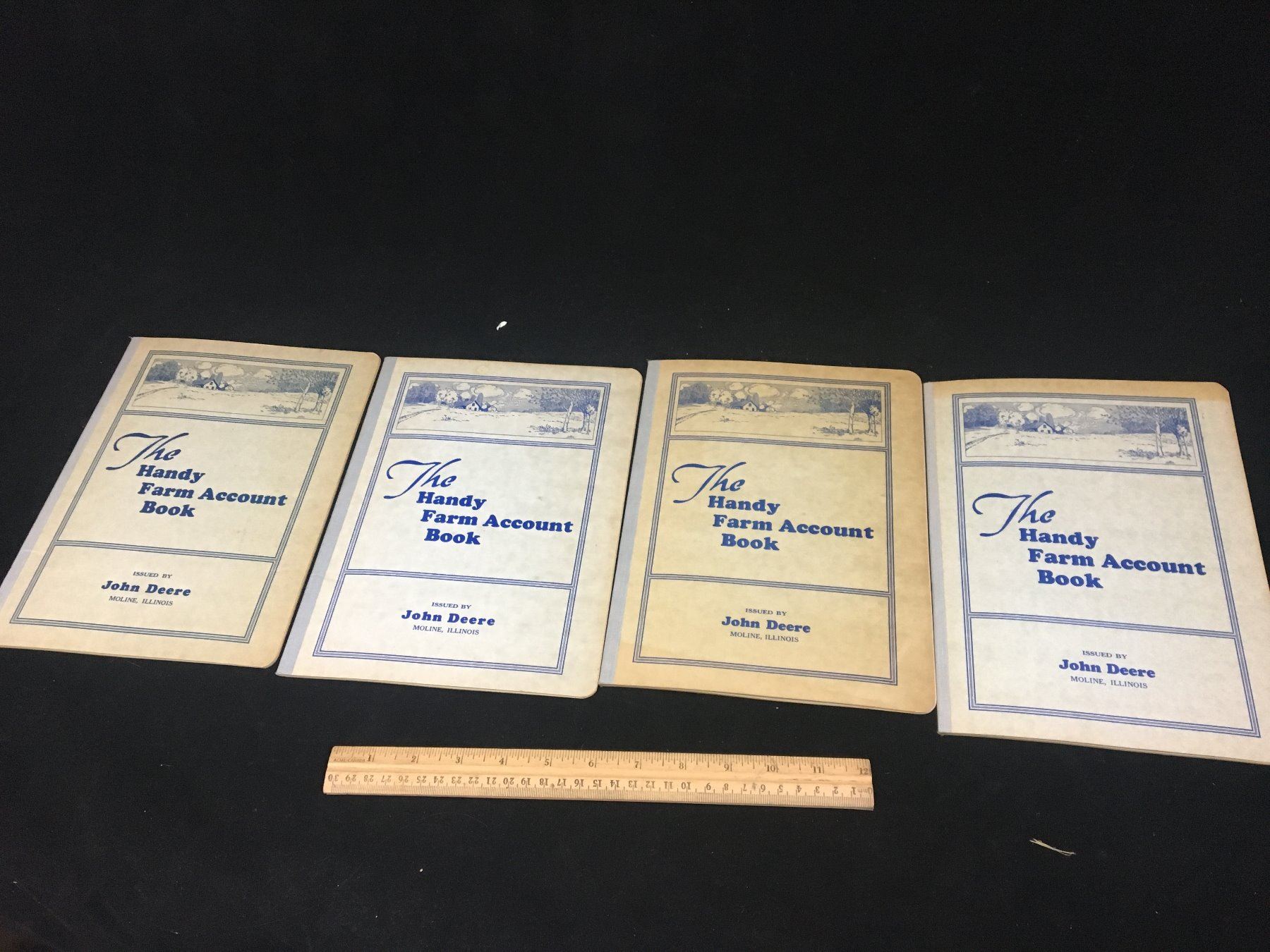 LOT OF 4 UNUSED JOHN DEERE HANDY FARM ACCOUNT BOOKS (1930s AND 40s)