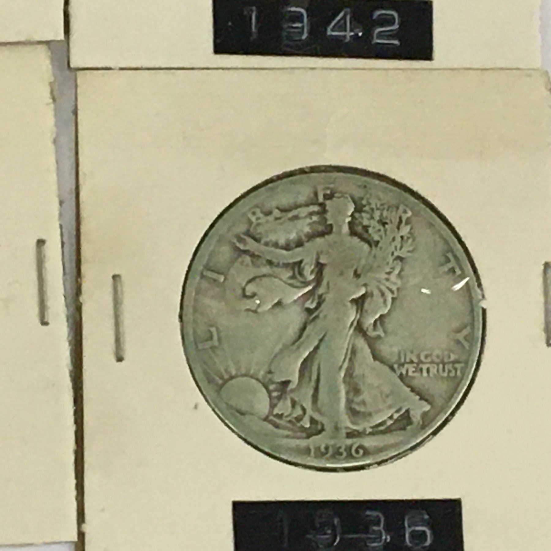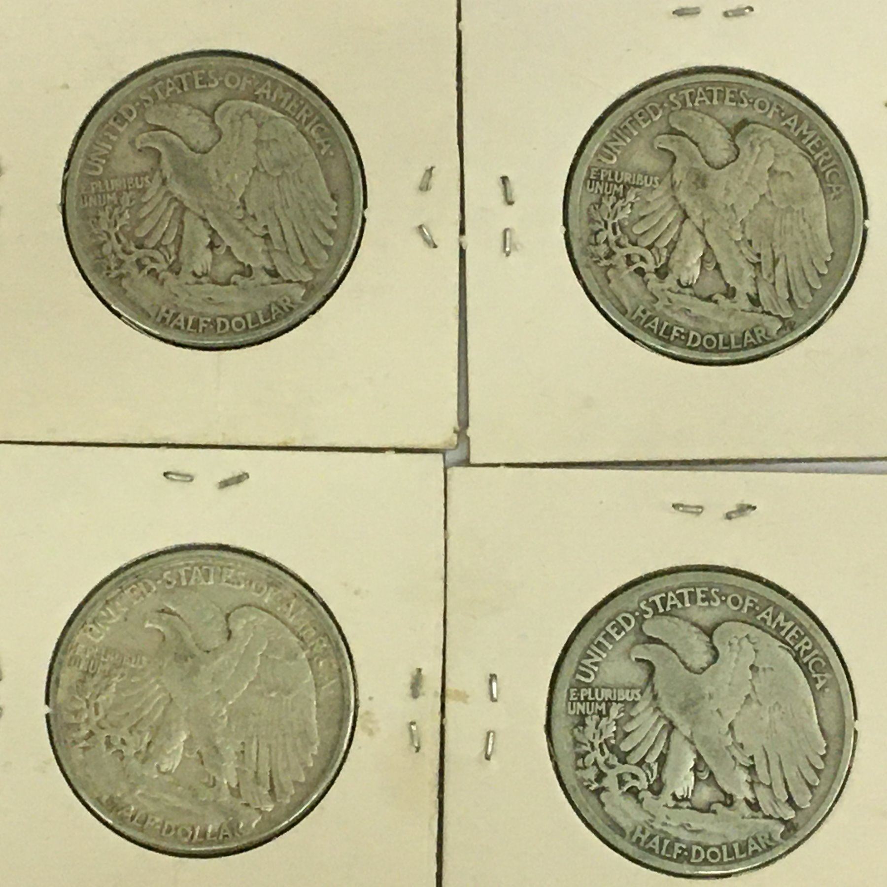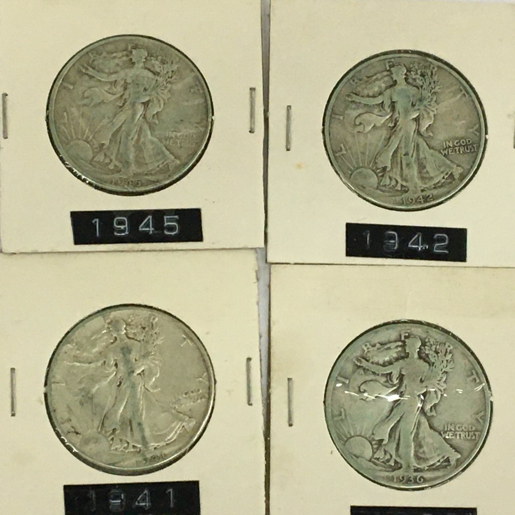 LOT OF 4 USA SILVER 50 CENT PIECES 1936 1941 1942 1945
