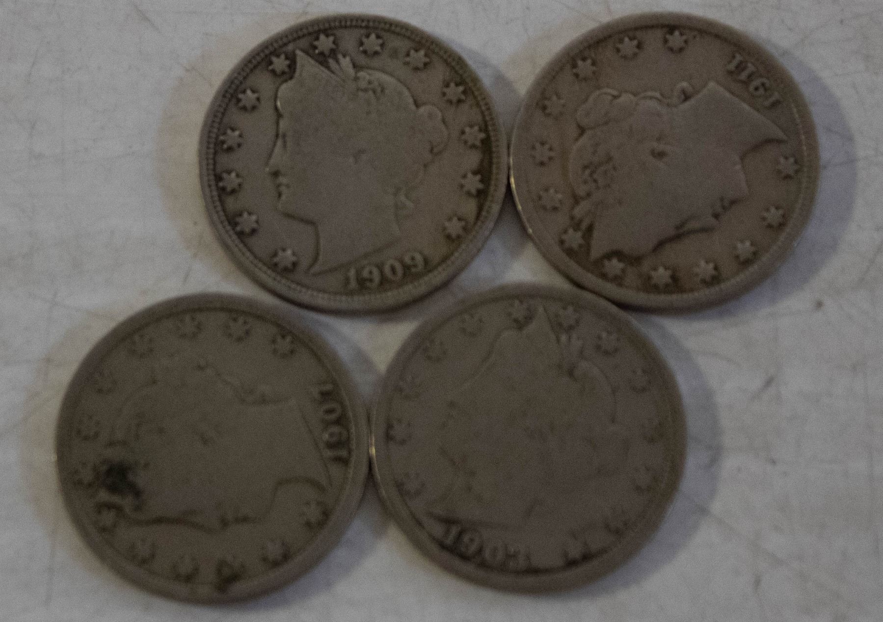 LOT OF 4 VARIOUS OLD USA 5 CENTS COINS