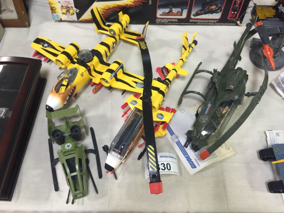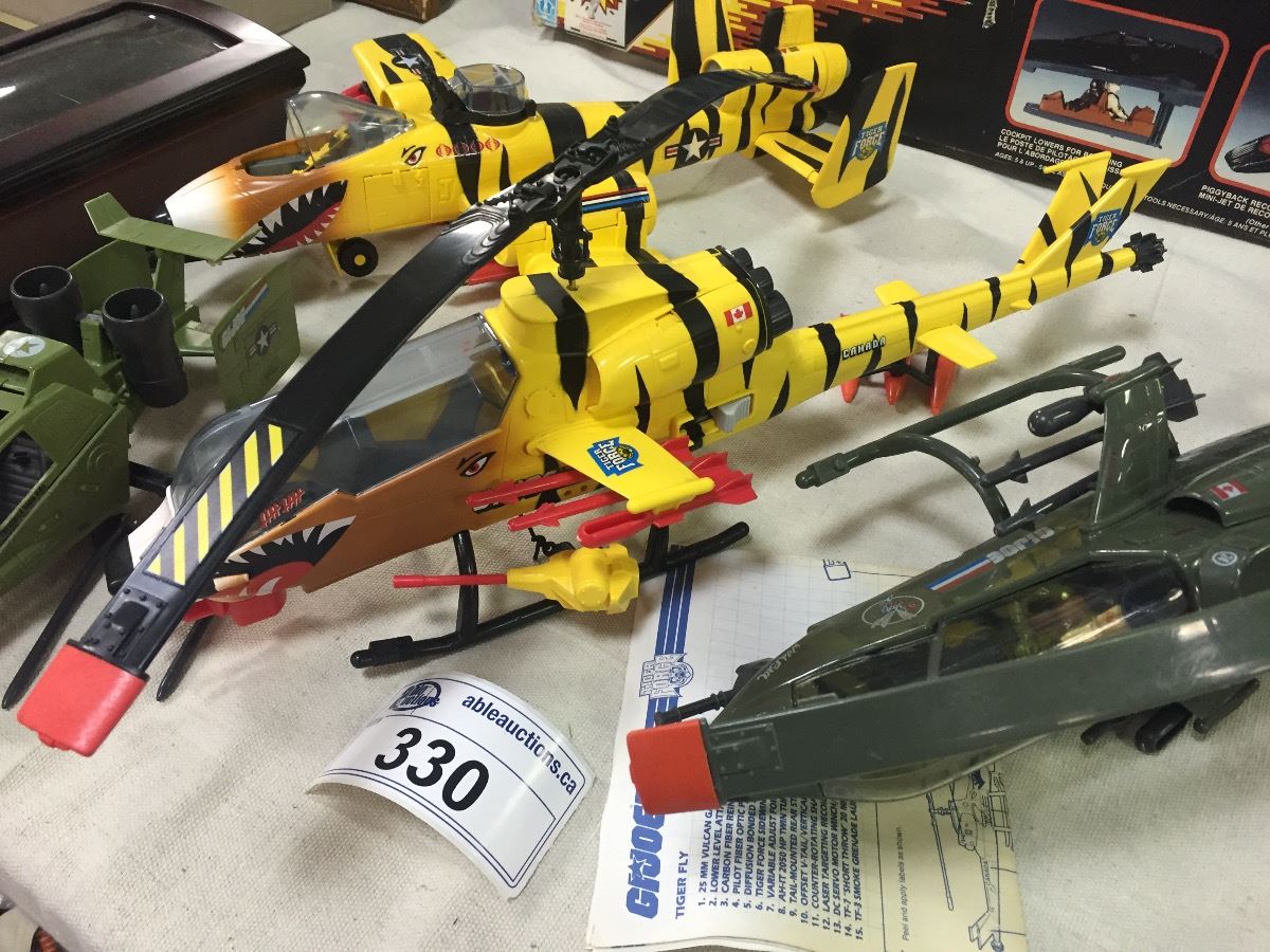 LOT OF 4 VINTAGE G.I. JOE ACTION FIGURES INCL. TIGER FLY HELICOPTER, TIGER FORCE PLANE, HELICOPTER AND MORE!
